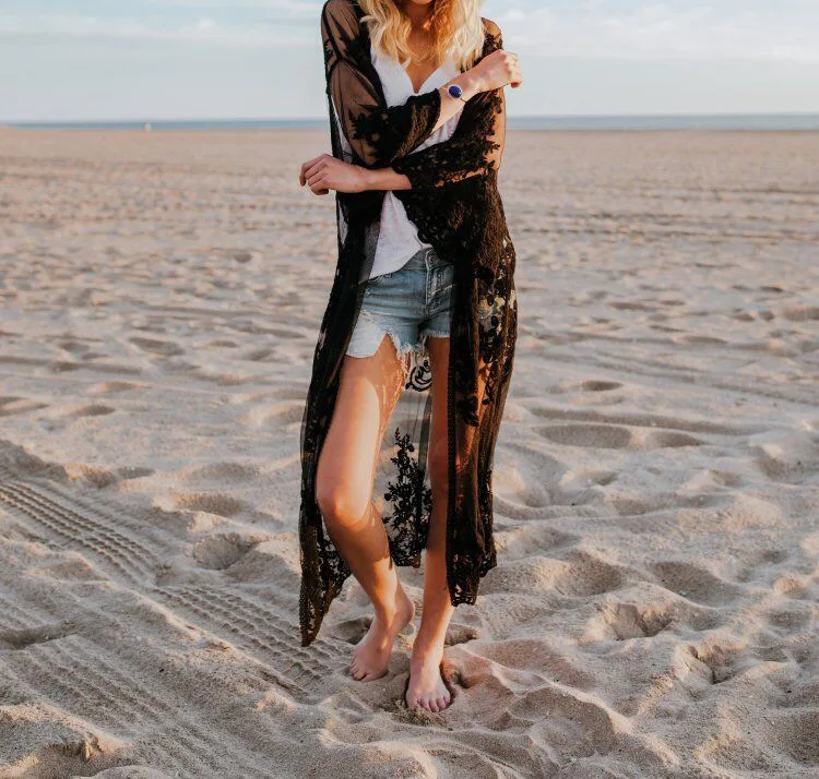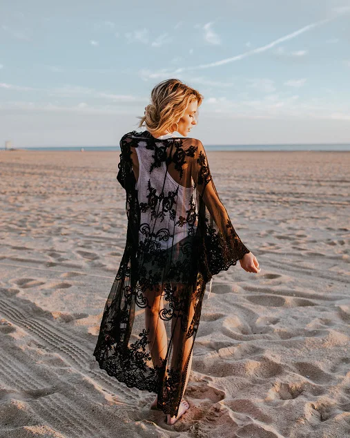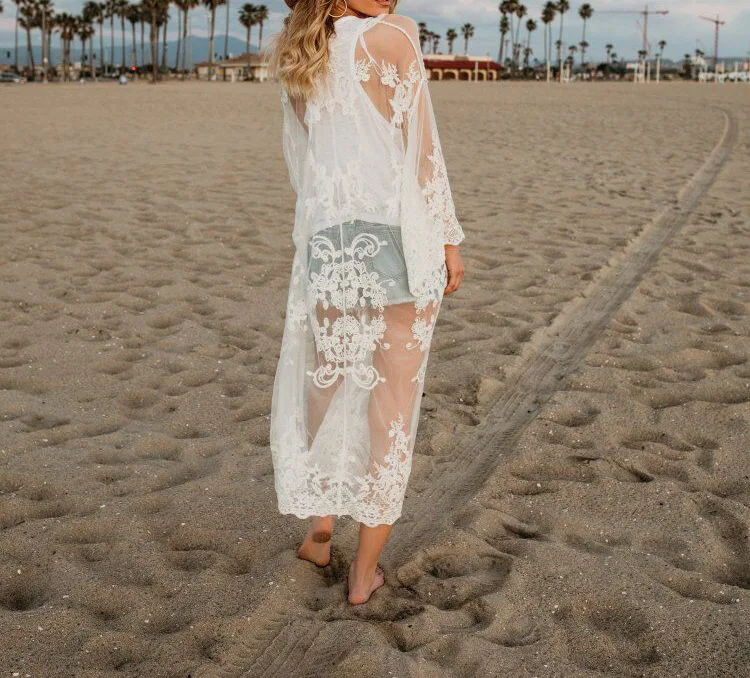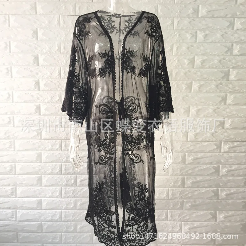 Женское пляжное кимоно в пол, свободное платье в стиле бохо с рукав...