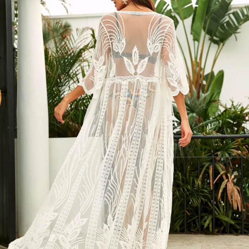 Женская пляжная одежда с вышивкой, длинное бикини с узором, Пляжная...