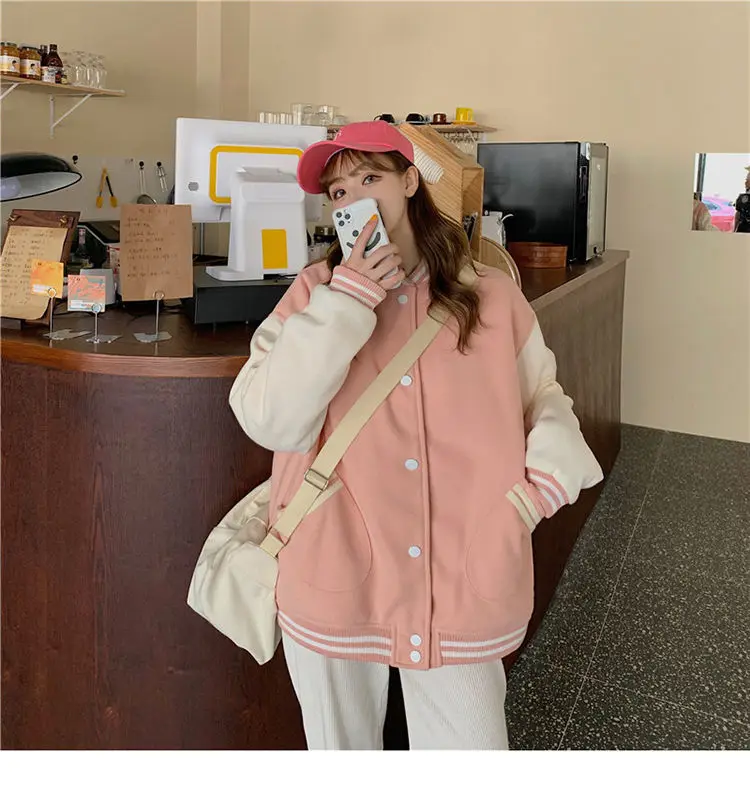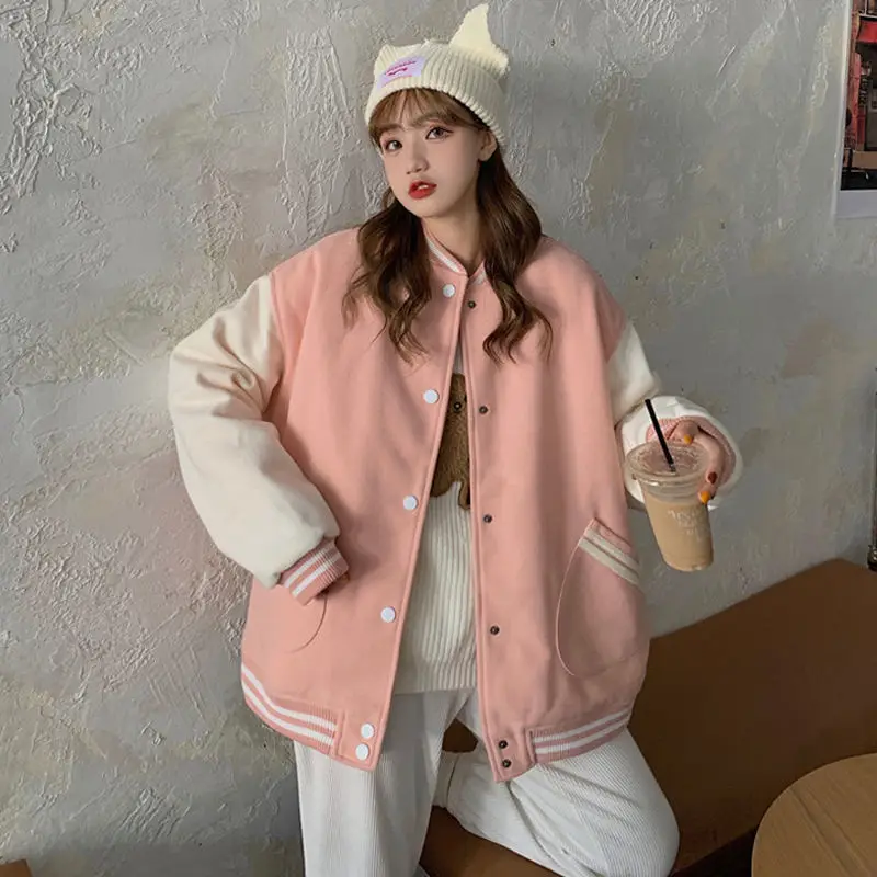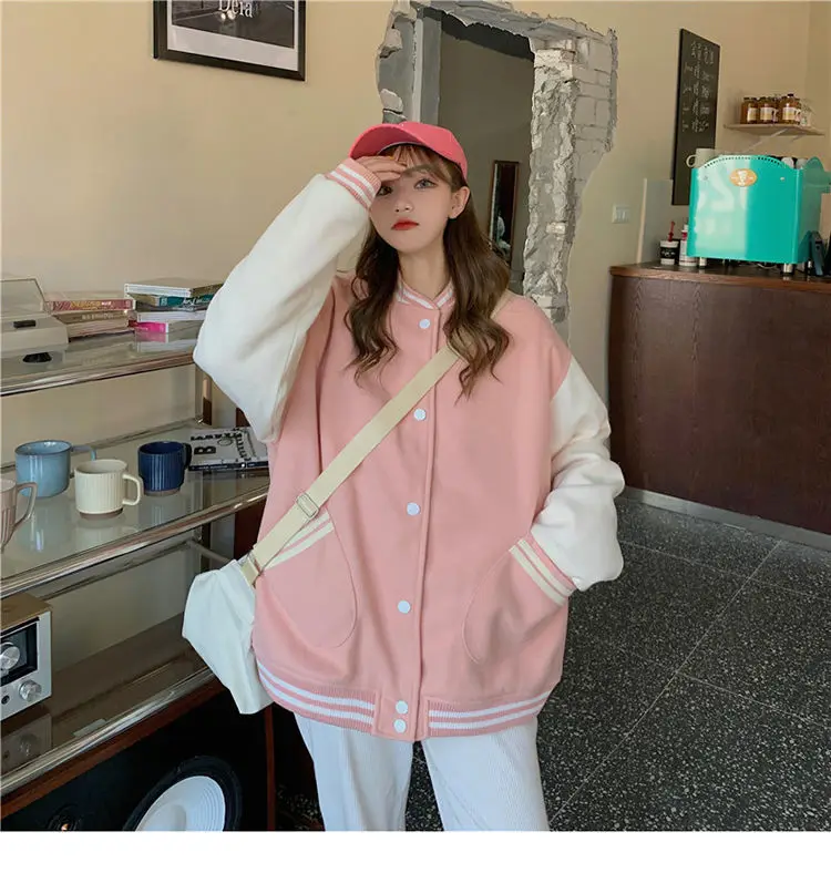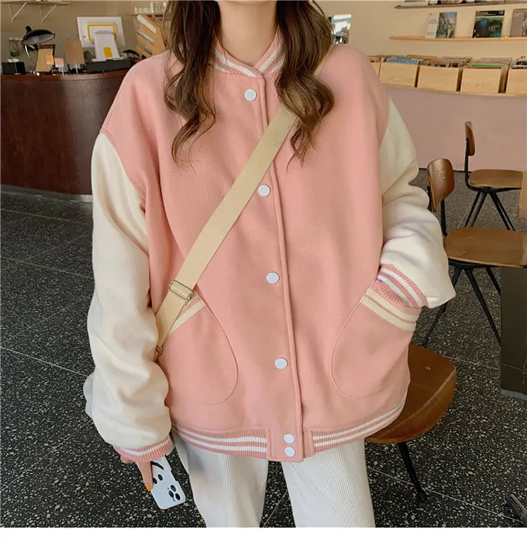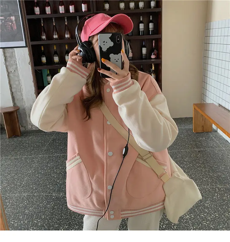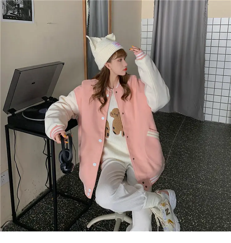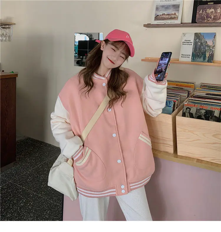 Осенняя американская бейсбольная Студенческая куртка, пальто для девочек, Спортивная розовая куртка-бомбер, женская форма, женская уличная одежда, повседневная Готическая куртка в стиле Харадзюку