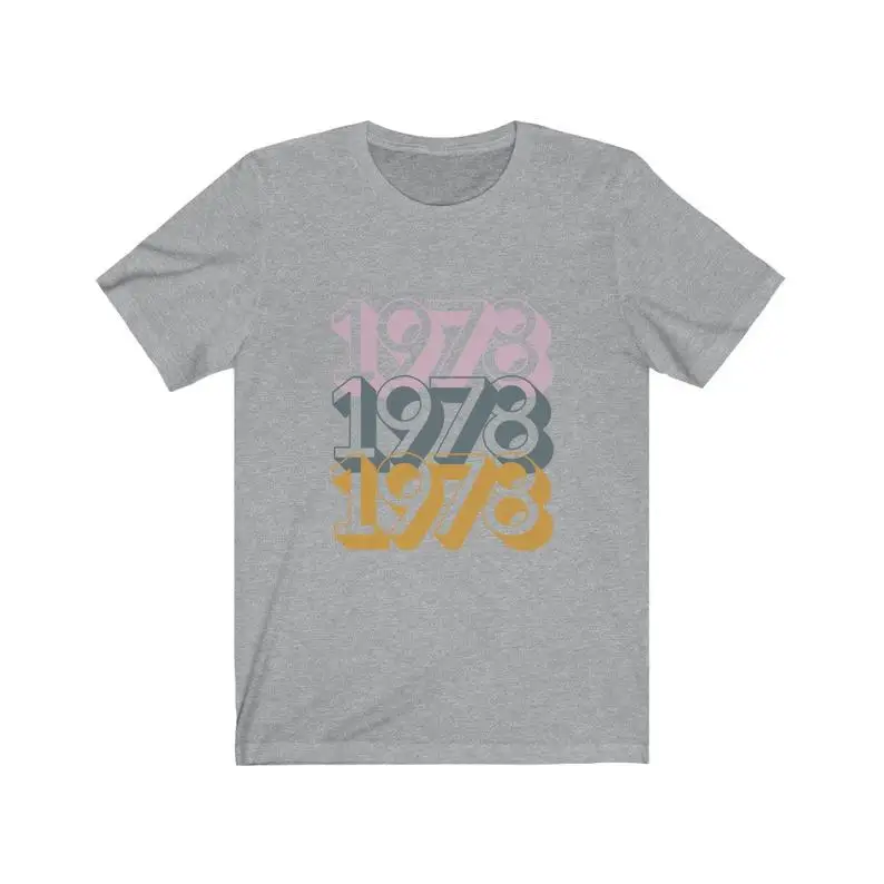Футболка с короткими рукавами в стиле унисекс футболка 1978 футболка для нее футболки для него гипоаллергенный браслет, прекрасный подарок для девушки, день рождения Gift1978 женские футболки, Состав ткани: хлопок и акрил