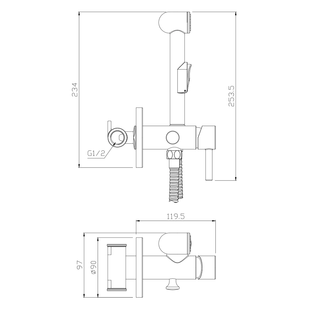 Смеситель комплектуется душевыми аксессуарами: 1-режимная гигиеническая лейка Touch Clean, душевой шланг с защитой от перекручивания.