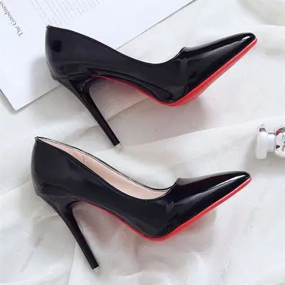 Туфли женские на высоком каблуке, заостренные легкие пикантные туфли на высоком каблуке, базовая обувь для работы, красная подошва