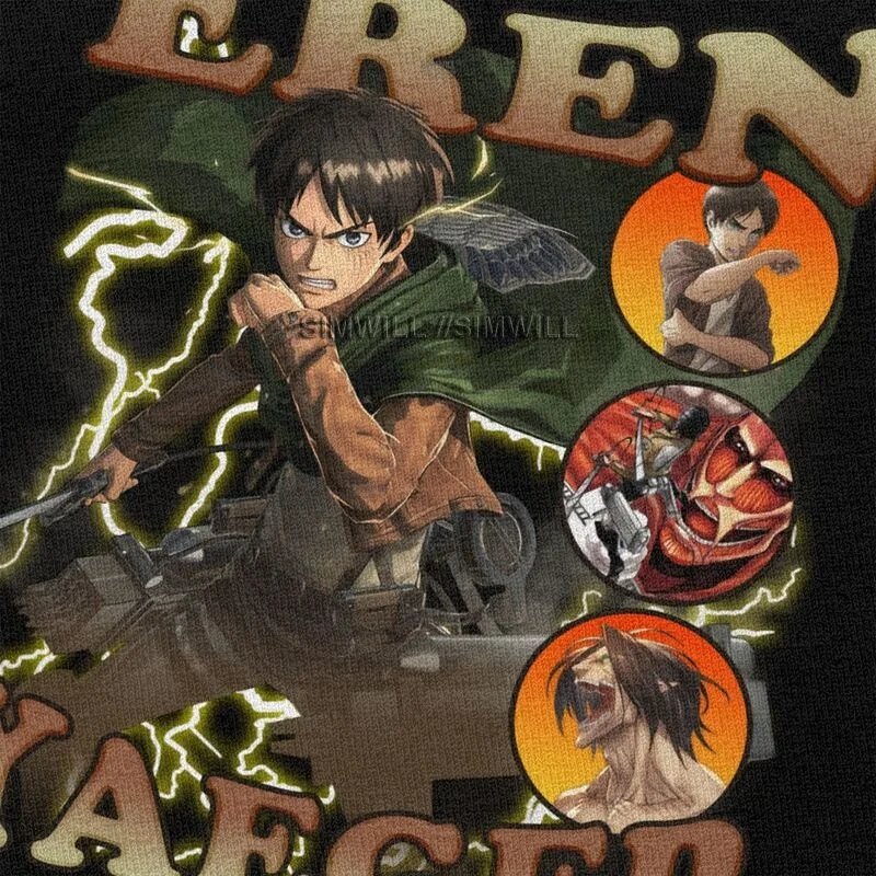 Футболка Эрена и йера из атаки на Титанов Мужская, тенниска из 100% хлопка, уличная одежда с короткими рукавами из аниме, Топ