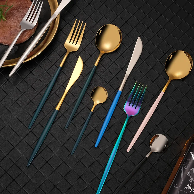 304 Нержавеющаясталь столовые ложки посуда набор с золотым ножом, столовая ложка, вилка, набор для мытья в посудомоечной машине ножи, вилки и ложки ужин набор дропшиппинг