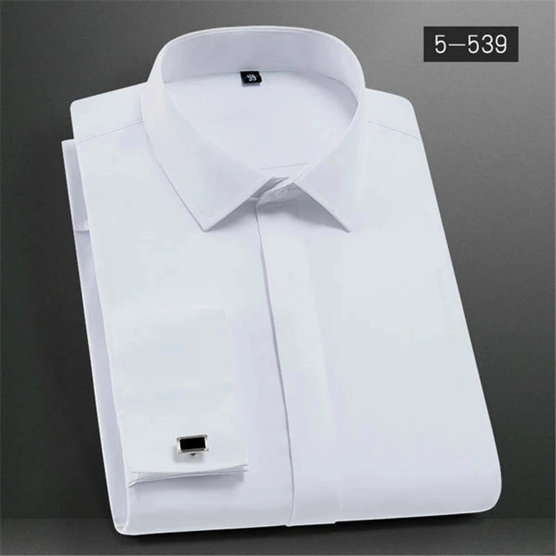 Для Мужчин's со стоячим воротником, с длинным рукавом, облегающая, мягкие удобные социальных французскими манжетами рубашки Для мужчин вечерние свадебные мужские рубашки под смокинг
