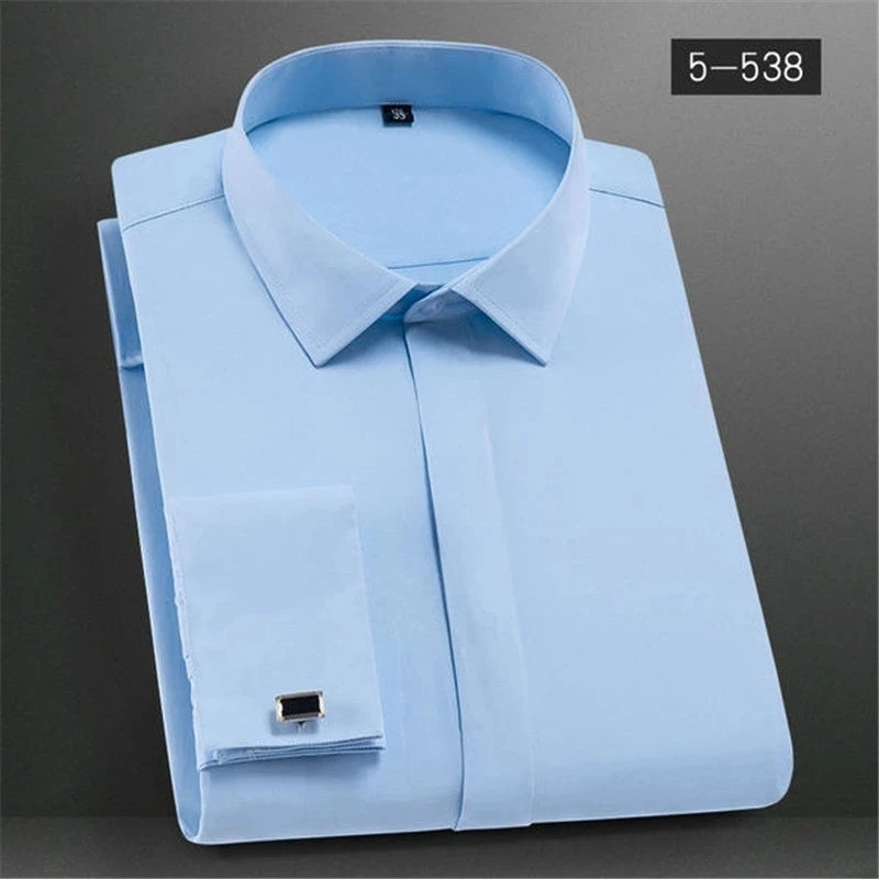 Мужская классическая Однотонная рубашка с французскими манжетами, ф...