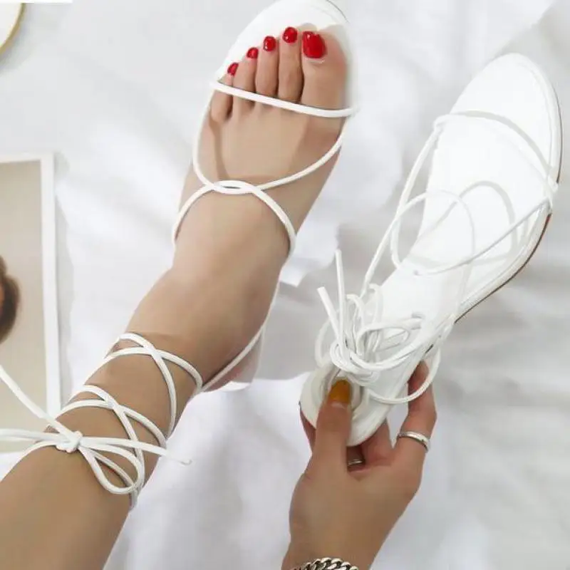 Сандалии женские летние зеленые на шнуровке, босоножки с перекрестн...