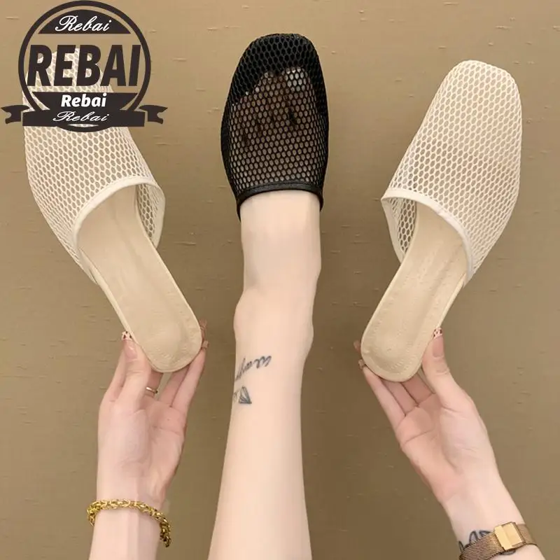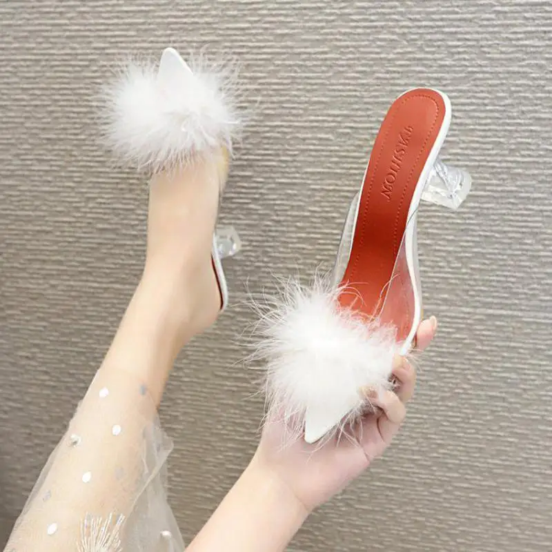 Женские сетчатые шлепанцы, прозрачные сандалии на высоком каблуке, ...