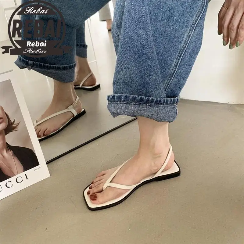 Сандалии Женские однотонные на плоской подошве, модные уличные тапо...