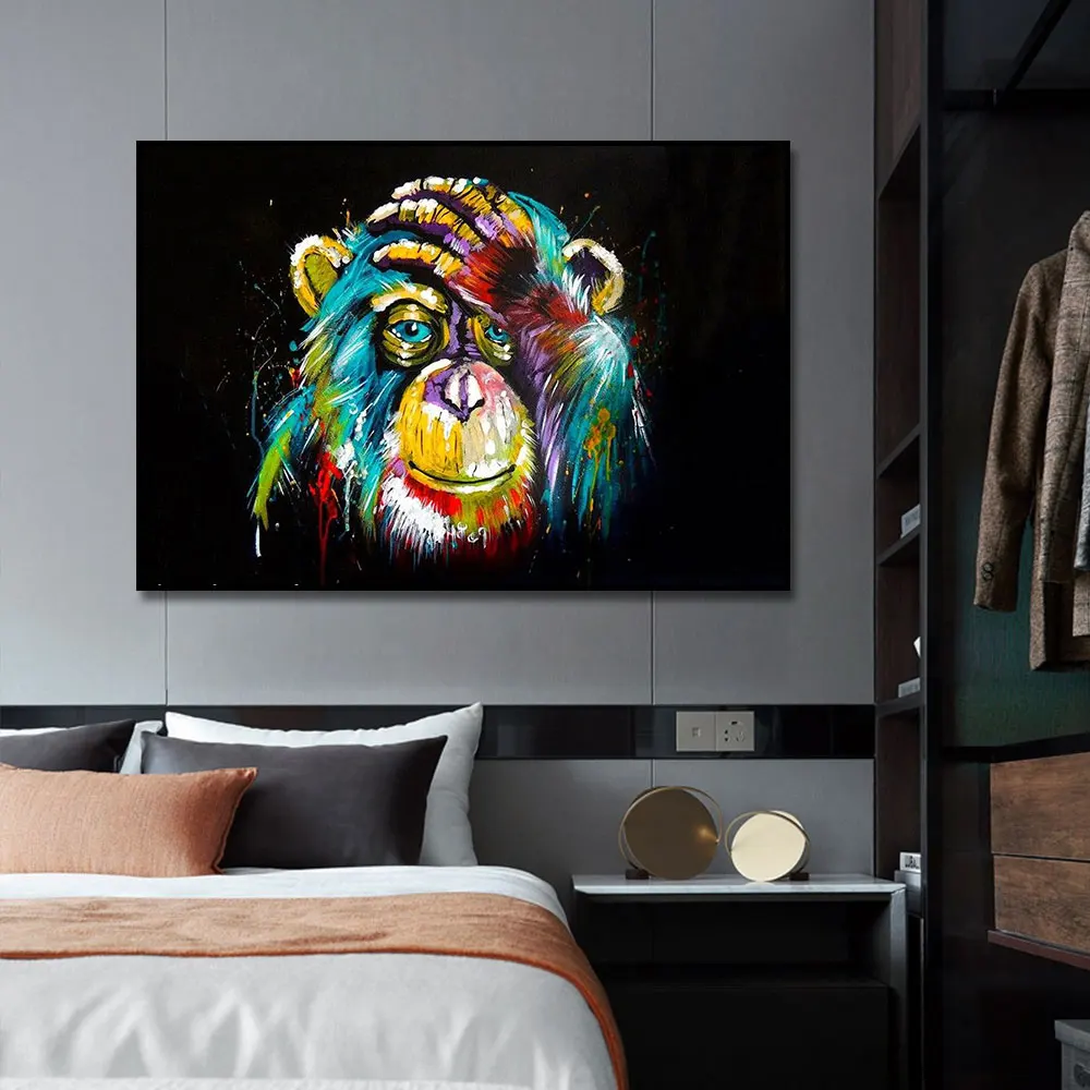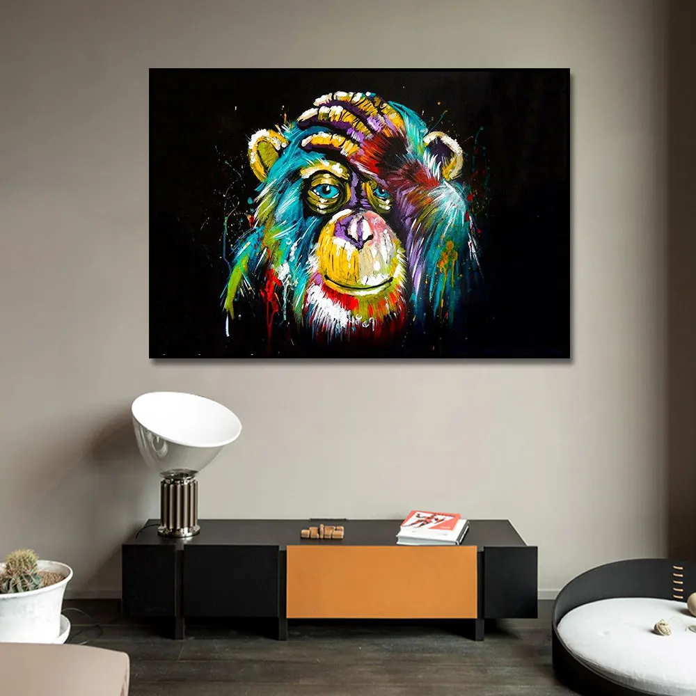 Современный граффити Картины разноцветные обезьянки сенсорной головкой фотографии Wall Art постер животного холст печати для Декор в гостиную