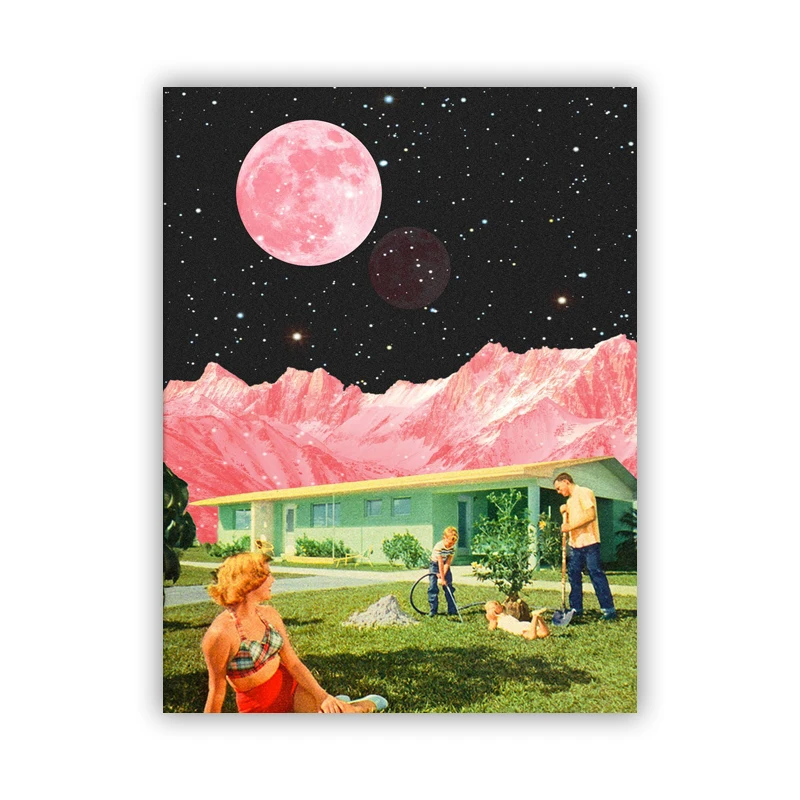 Винтажная картина Сюрреализм розовая Луна природа пейзаж постер пси...