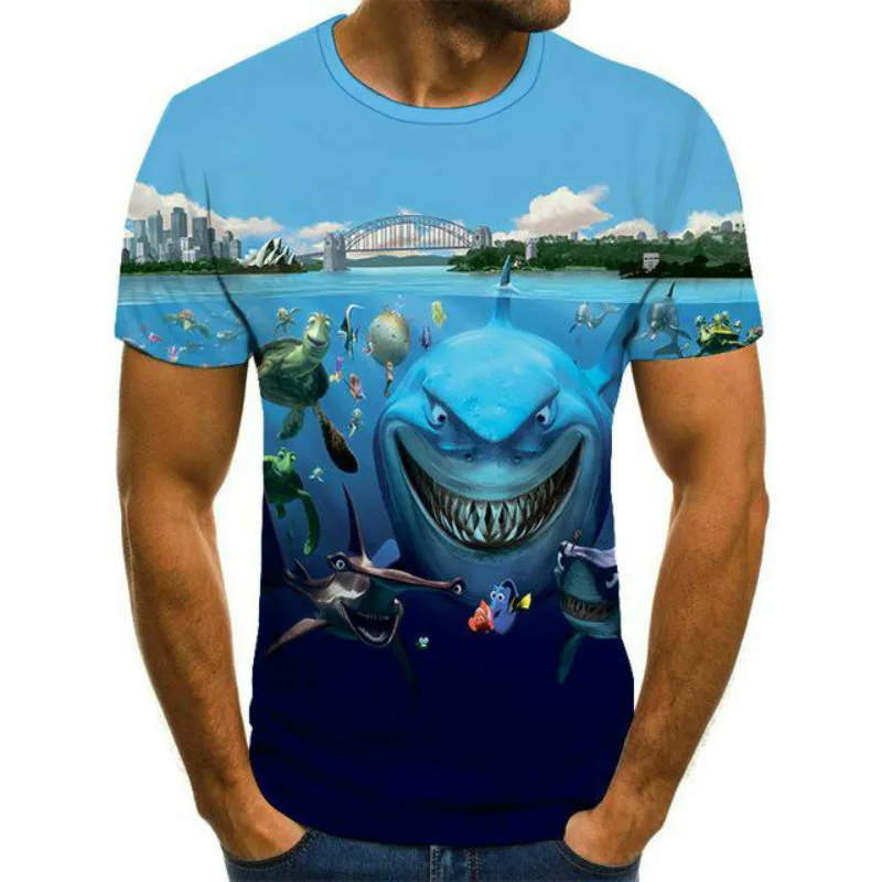 Футболка Мужскаяженская с круглым вырезом, Повседневная рубашка с 3D-принтом рыбы, с коротким рукавом, в стиле модерн, Молодежный стиль хип-хоп, лето 2021 Fa