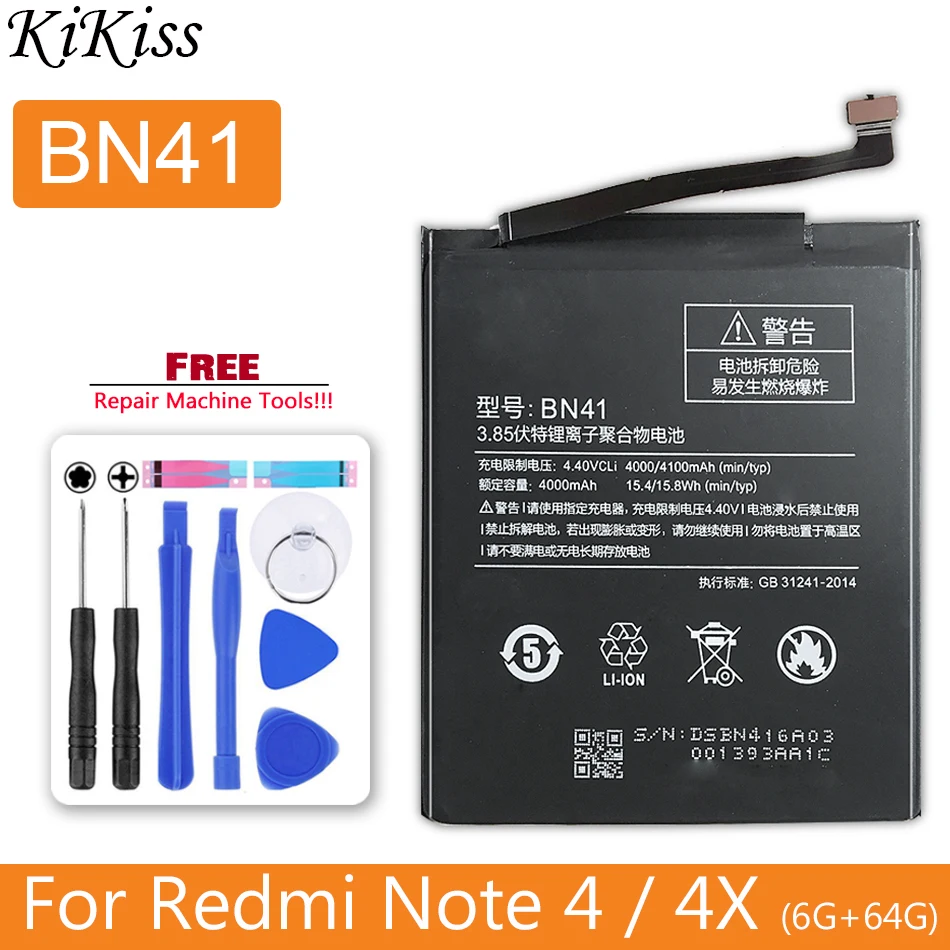 Модель Емкость Подходящий мобильный телефон BM32 3000 мАч Для xiaomi mi 4 M4 mi4 BM33 3120 мАч Для Xiaomi mi 4i M4i mi4i BM35 3080 мАч Для Xiaomi mi 4c M4c mi4C BM38 3210 мАч Для Xiaomi mi 4S M4s mi4S BM47 4100 мАч Для Xiaomi Redmi 3 3S 3X Redmi 4x BN30 3030 мАч Для Xiaomi Redmi 4A BN40 4100 мАч Для Xiaomi Redmi 4 Pro Prime 3G RAM 32G ROM Edition BN41 4100 мАч Для Xiaomi Redmi Note 4 MTK Helio X20/Для Redmi Note 4X Pro 4G + 64G BN42 4100 мАч Для Xiaomi Redmi 4 (2G RAM 16G ROM Edition) BN43 4100 мАч Для Xiaomi Redmi Note 4X 3G + 32G/Для Redmi Note 4 глобальная версия Snapdragon 625