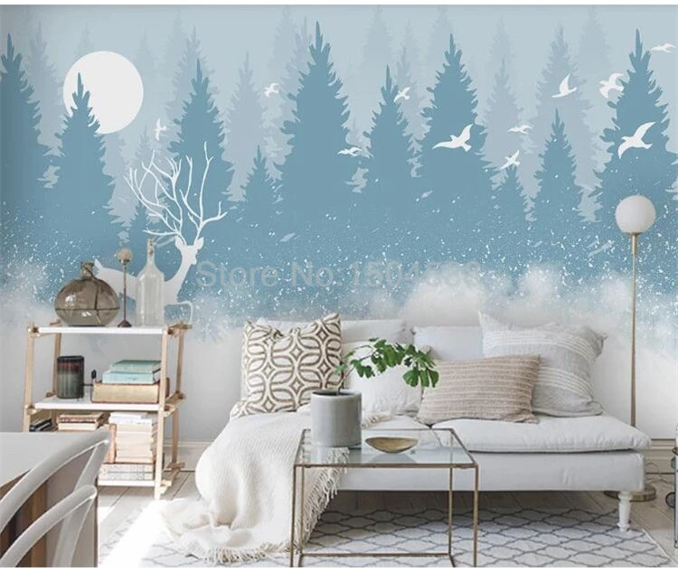 Пользовательские фото обои в скандинавском стиле ручная роспись лес Лось птица 3D роспись фон для детской комнаты обои декор обои
