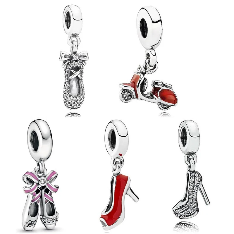 Оригинальная красная эмалированная подвеска-бусина Tinker на высоком каблуке-шпильке для скутера с кристаллами, украшение из стерлингового серебра 925 пробы