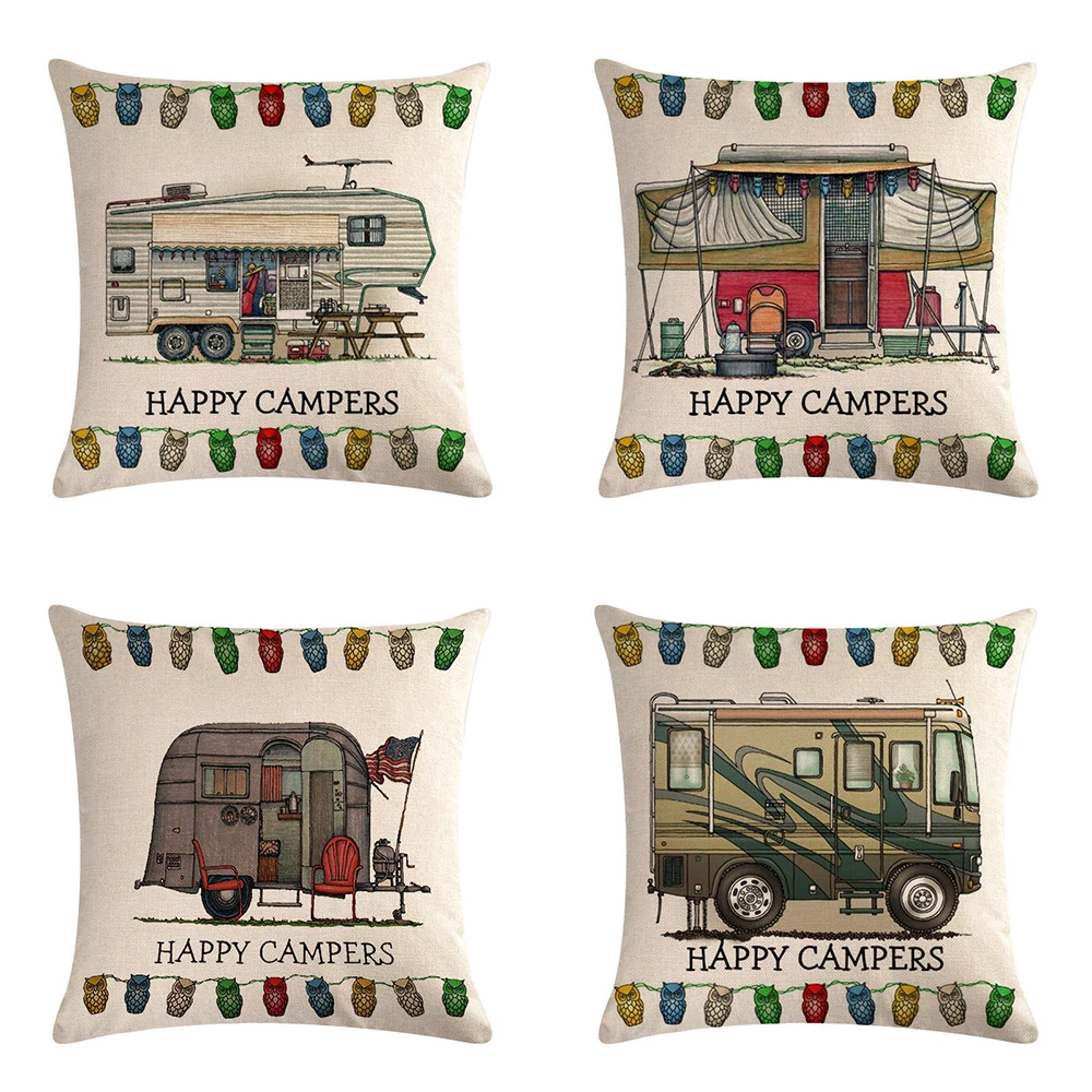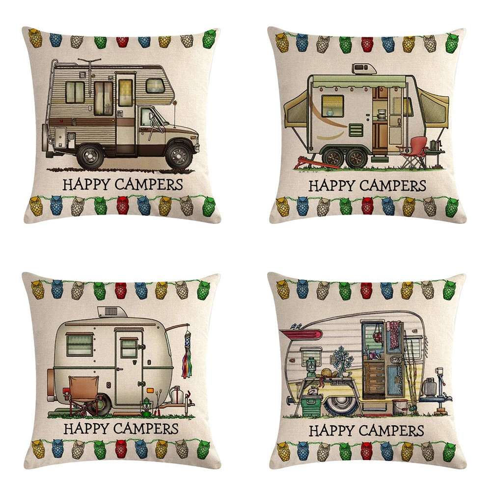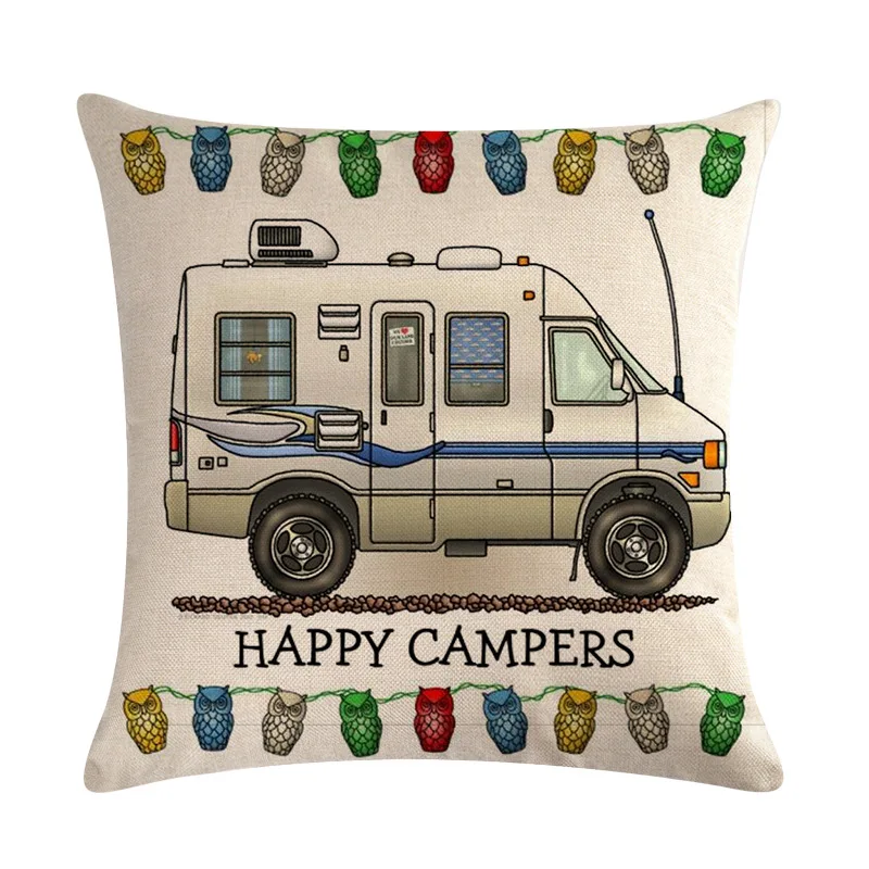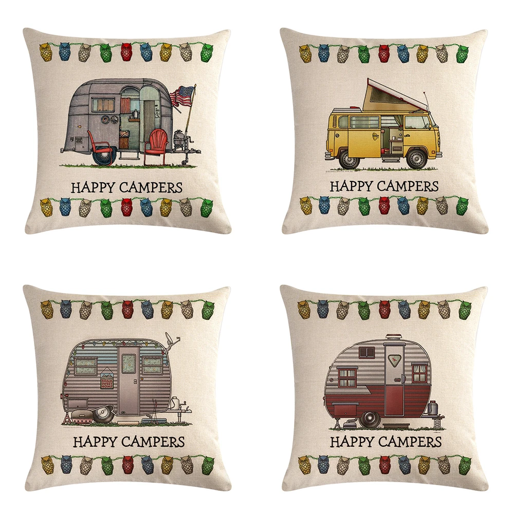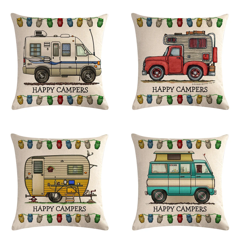 Happy Campers льняные наволочки с мультяшным рисунком для фургона в...