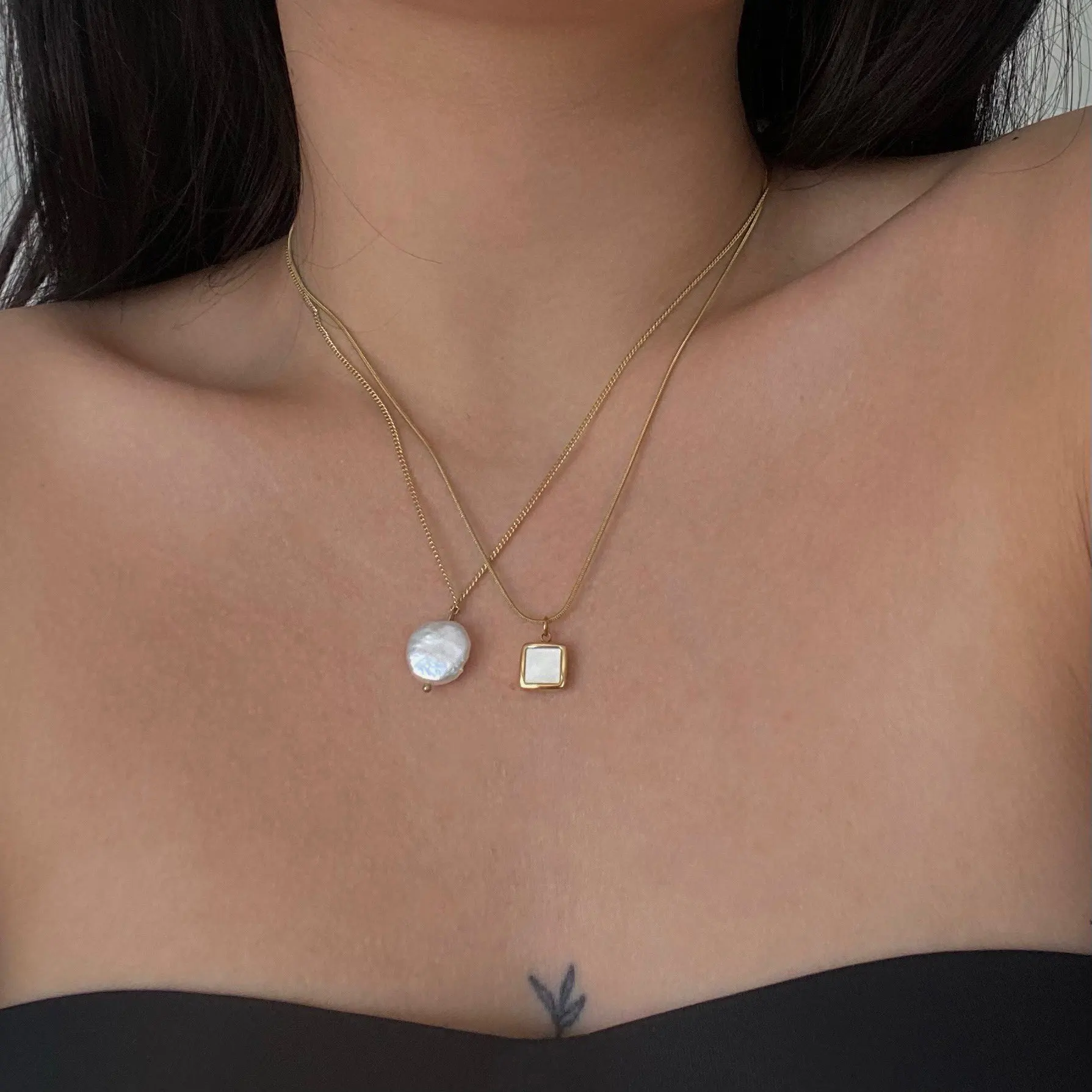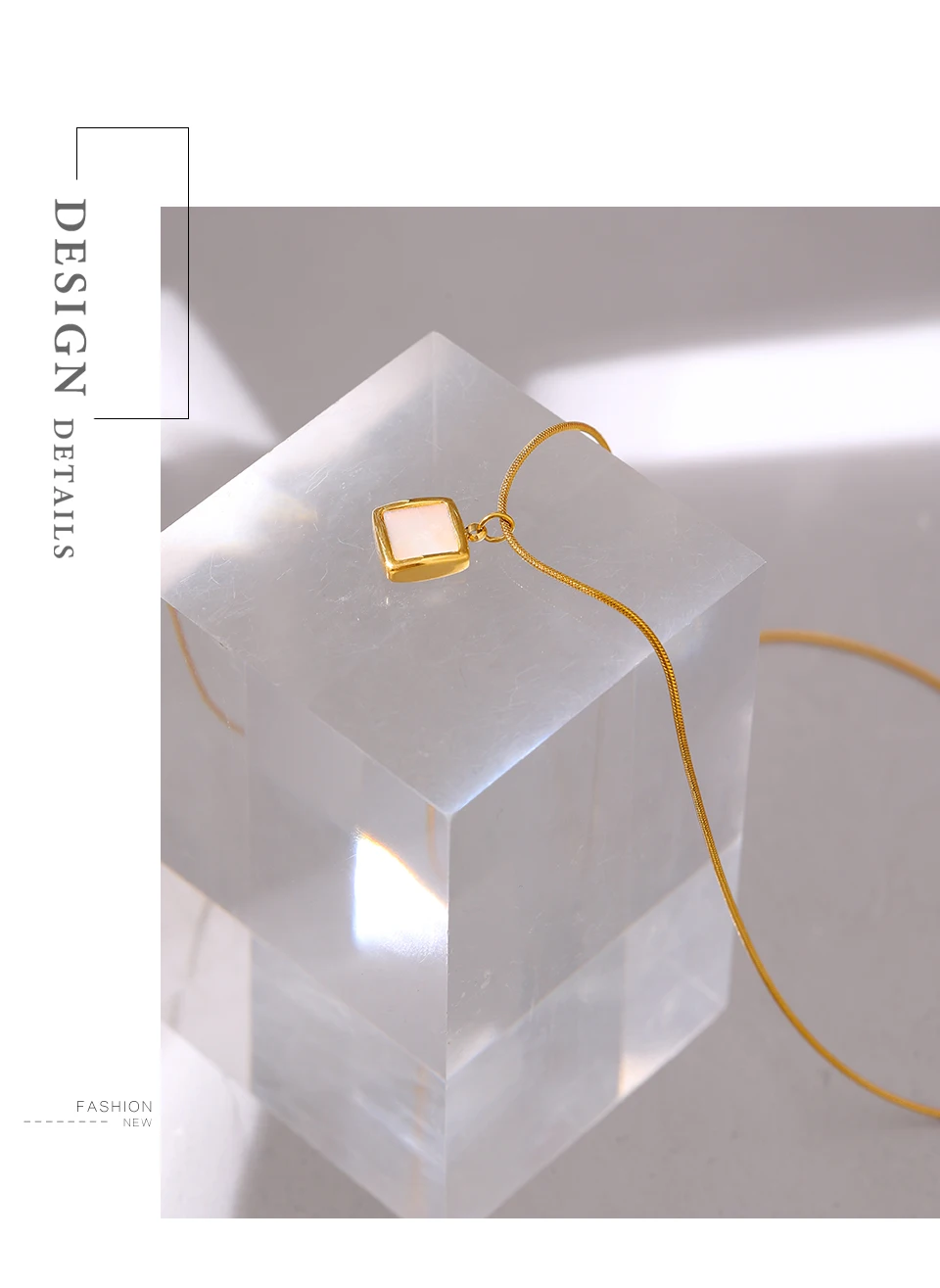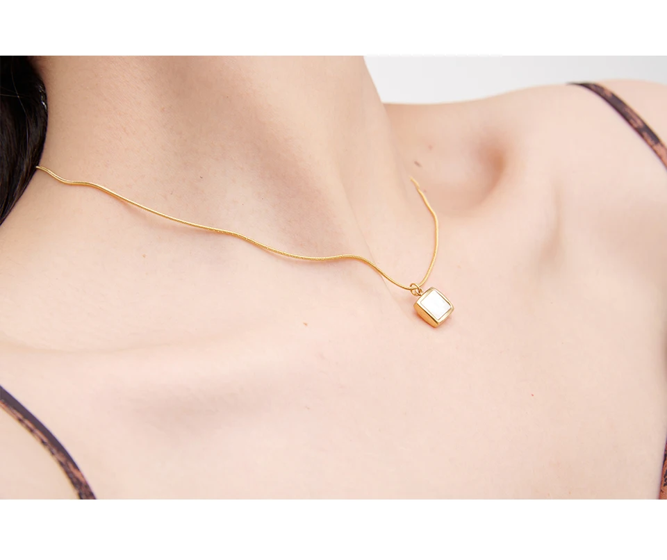 Женское массивное ожерелье Yhpup с квадратной подвеской из ракушек, золотое ожерелье из нержавеющей стали, ожерелье для матери, 2021