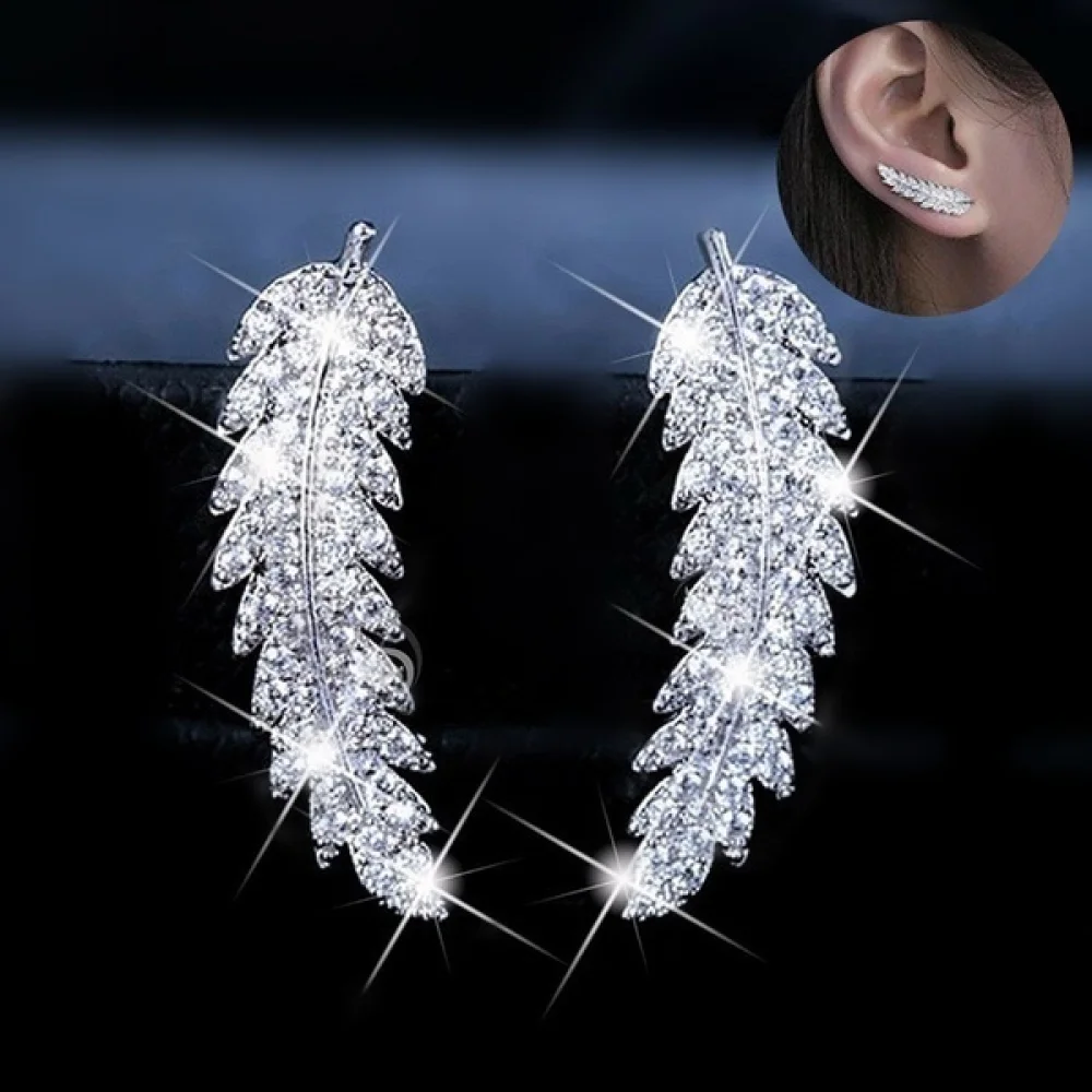 Серьги-каффы женские, с перьями, с кристаллами, в подарок, 2021