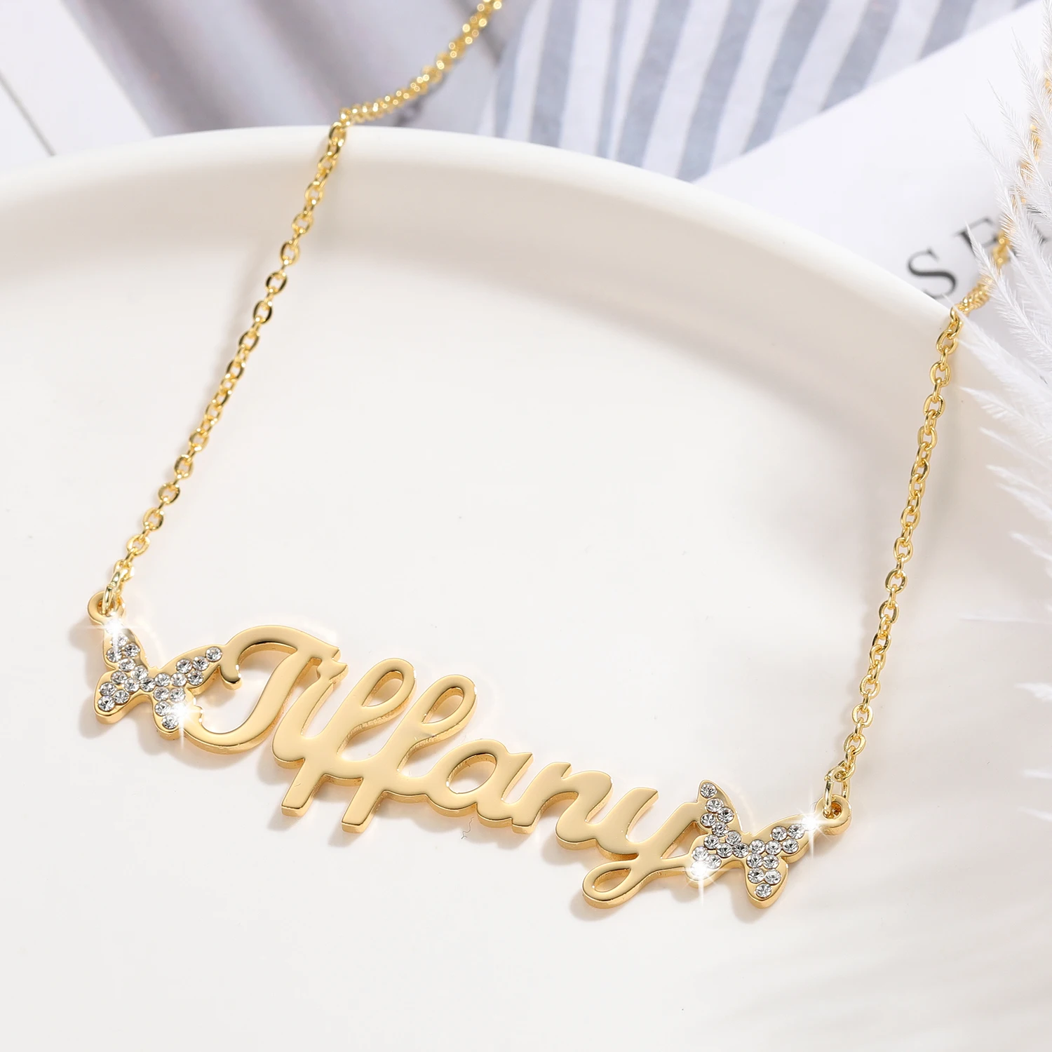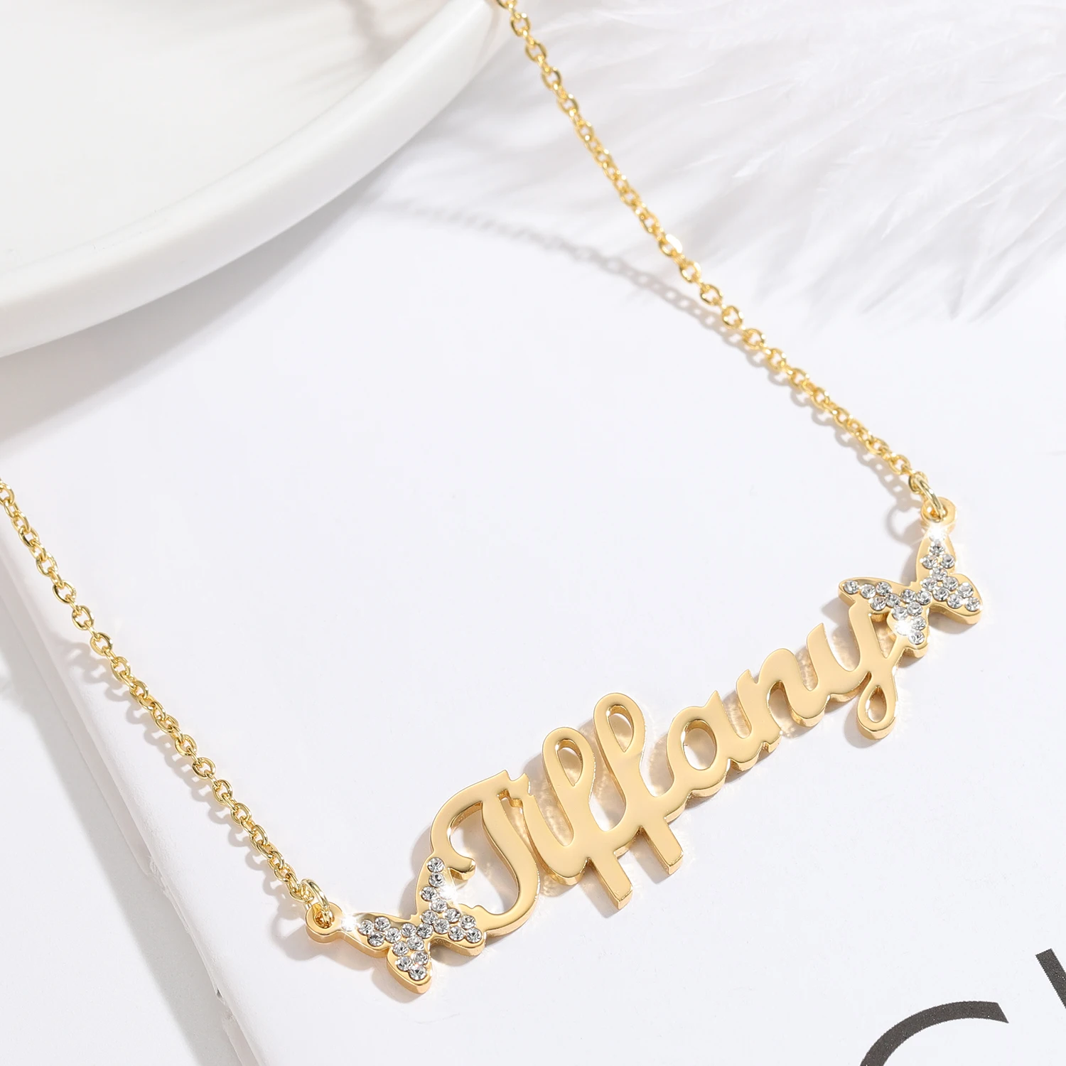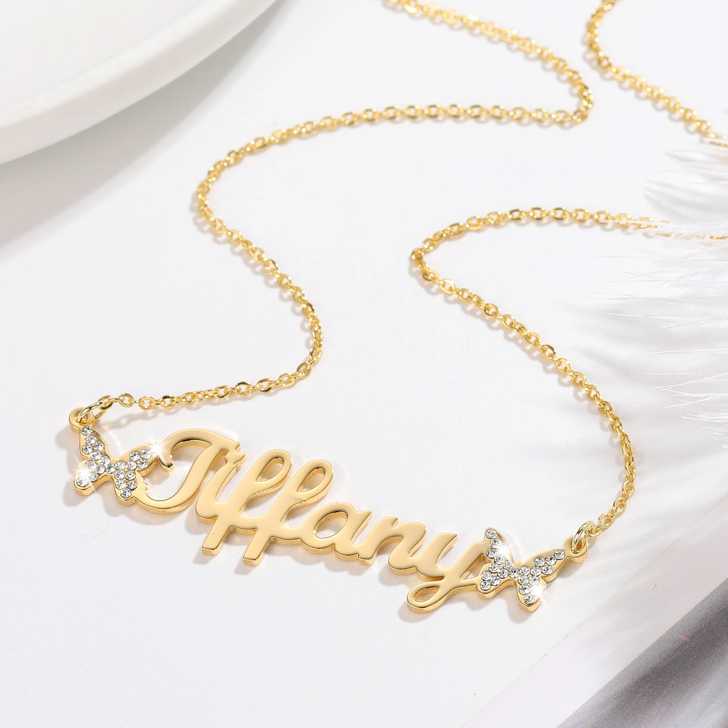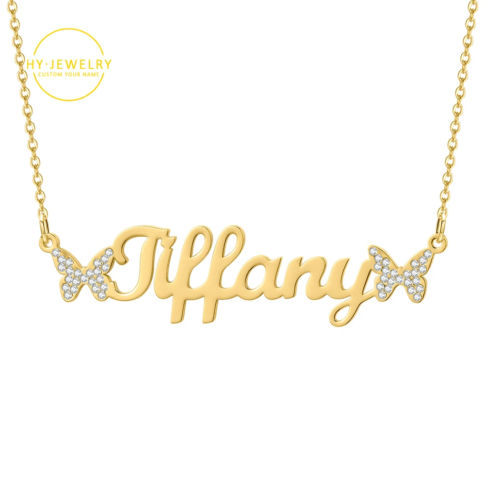 Ожерелья с именем бабочки на заказ для женщин Золотая цепочка из нержавеющей стали ожерелья украшенная бабочкой подарки