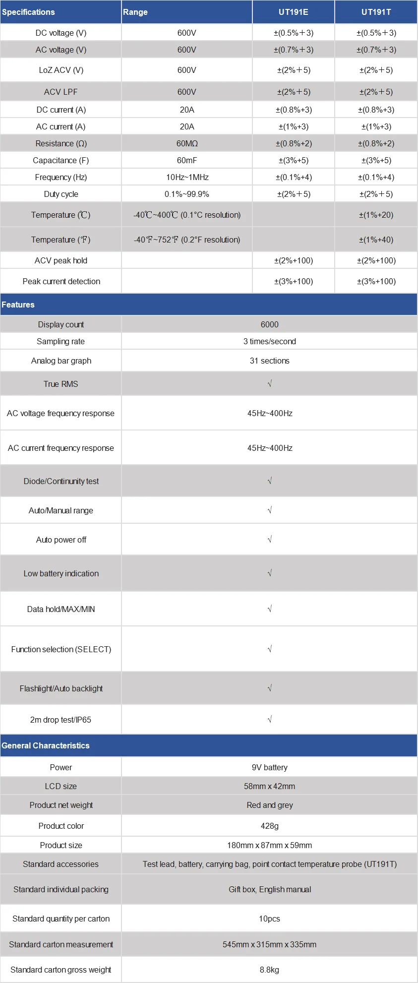 Цифровой мультиметр UT191T, UT191E, истинное среднеквадратичное зна...