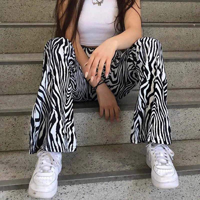Брюки женские широкие, с принтом зебры, с высокой талией, 2021
