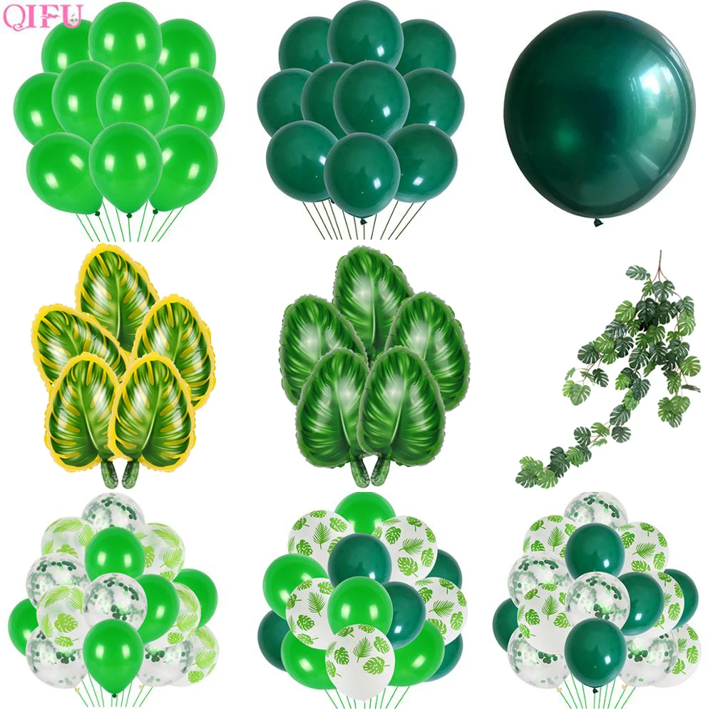 QIFU мятно-зеленые воздушные шары, лесные животные, Пальмовые Листья, шары, джунгли, сафари, день рождения, вечеринка, Декор, Детские тропические Гавайские баллоны для вечеринок