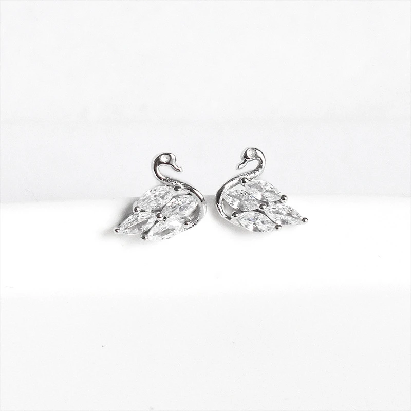 LKO настоящее серебро 925 пробы изысканный кристалл серьги-гвоздики в виде лебедя для женщин элегантные очаровательные серьги-гвоздики для девочек подарок для вечеринки