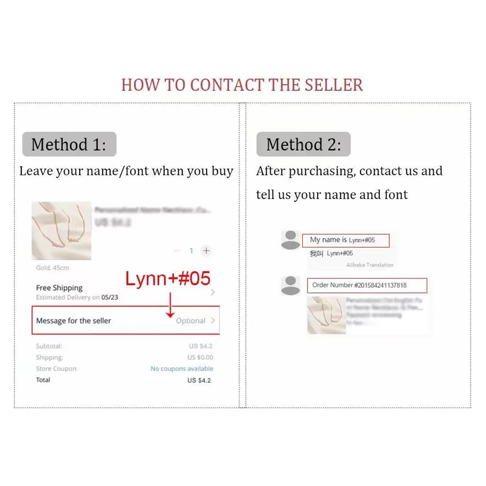 Примечание: друзья, перед размещением заказа, пожалуйста, пришлите нам имя, которое вы хотите настроить, а затем выберите нужный вам Тип шрифта (например: Alice + #01), чтобы мы могли сделать и, наконец, отправить заказ.Если вы забудете, я подожду 24 часа. Если вы не ответите, Я настрою для вас имя получателя + #01.После 24 часов размещения заказа, вы не сможете отменить заказ или изменить заказ, потому что мы уже начали производство продукта, поэтому, пожалуйста, примите во внимание.Для изготовления изделий на заказ требуется 8-10 дней. Если вы хотите получить товары быстрее, выберите более быстрый способ доставки.Мы сделаем подходящий размер в соответствии с вашим именем. Если у вас есть особые требования к ширине и высоте имени или длине цепочки, вы также можете оставить нам сообщение.