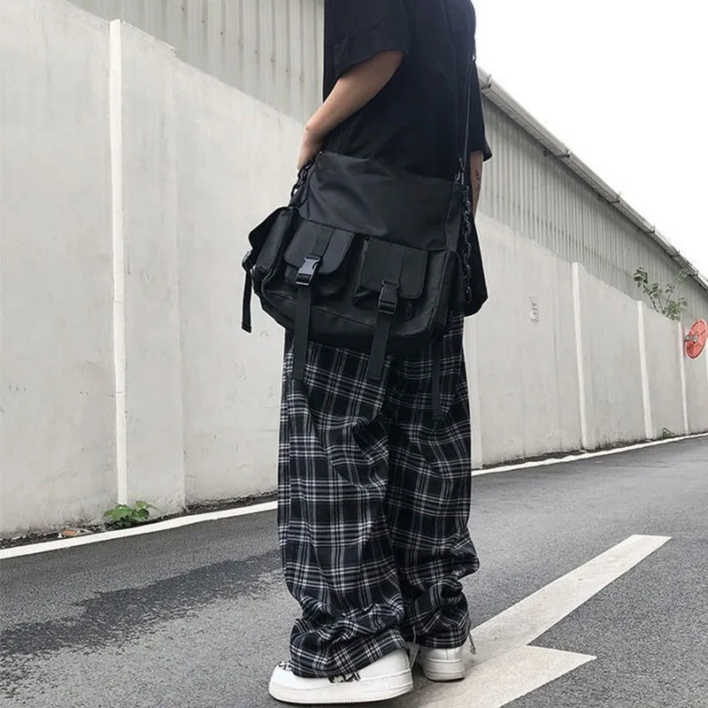 Женские клетчатые брюки в стиле Харадзюку, уличные Свободные повсед...