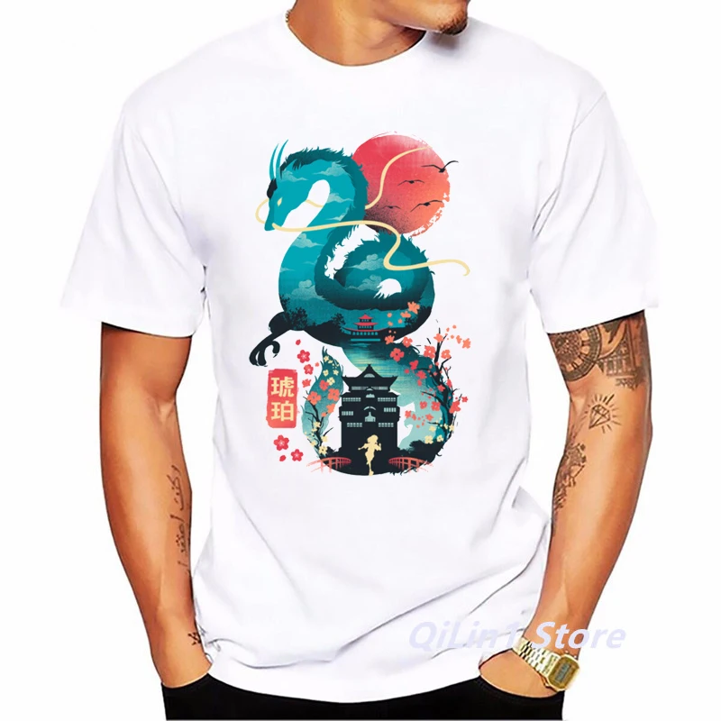 Футболка мужская в стиле японского аниме с рисунком из дракона