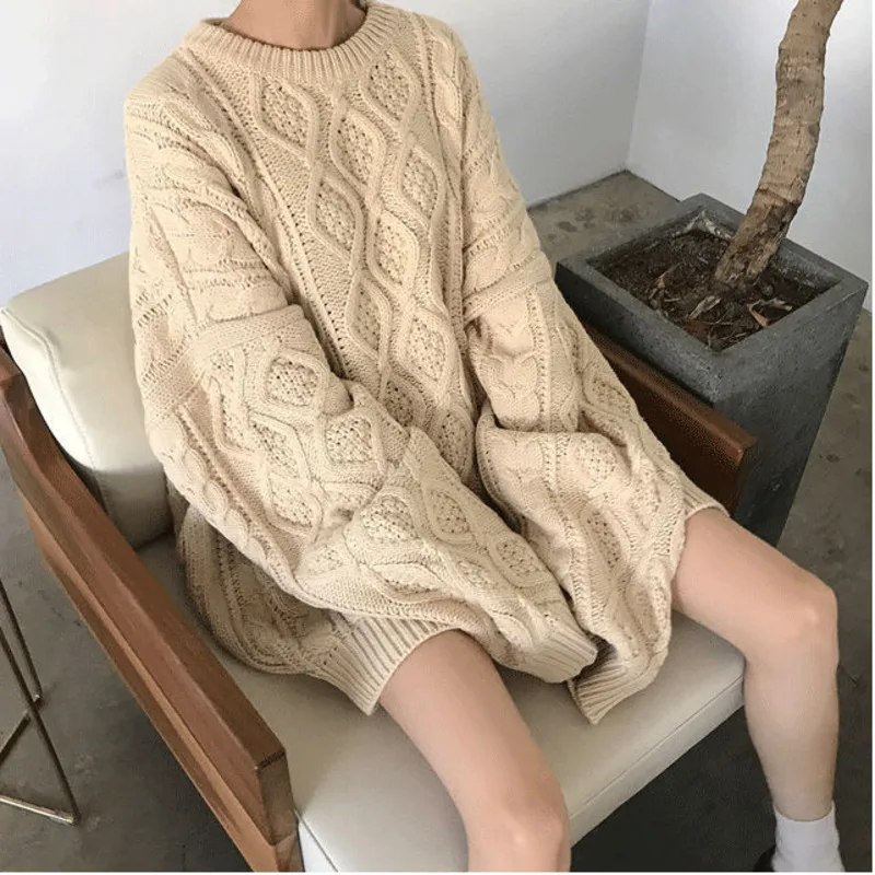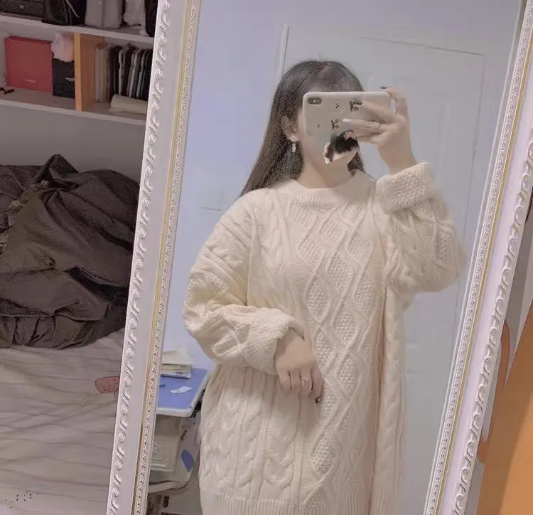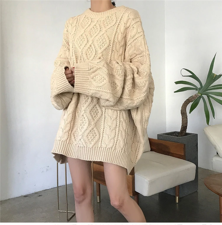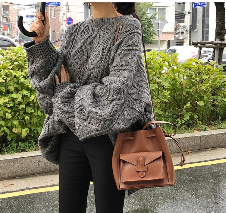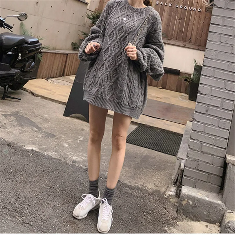 Женские пуловеры, свитер, осенне-зимний вязаный Серый свободный элегантный повседневный пуловер оверсайз в стиле Харадзюку, Женский пуловер