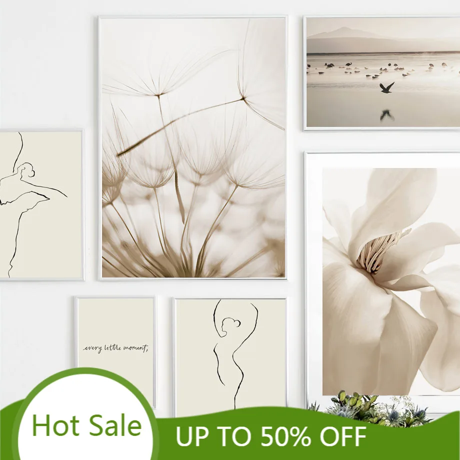 Картина на холсте WTQ, с изображением белых ракушек, пляжа, цветов, одуванчиков, постеры в скандинавском стиле, декор для комнаты, картины для украшения дома