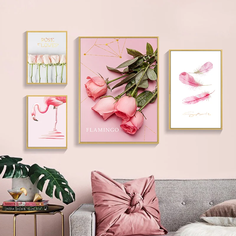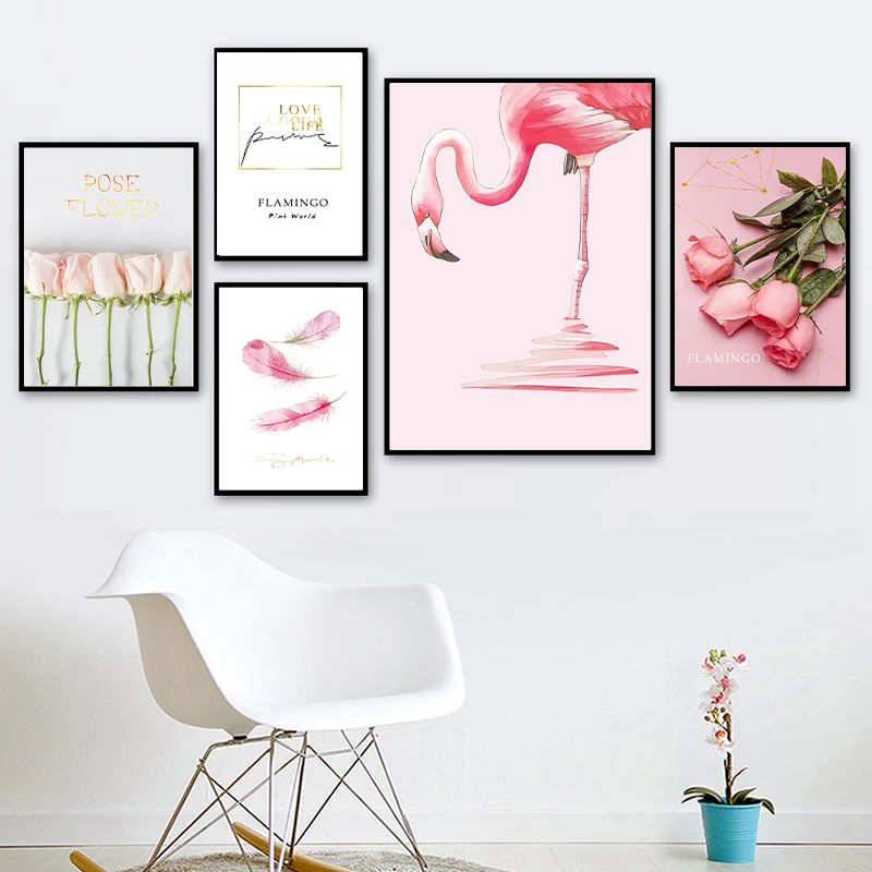 Nordic Фламинго цветок розы настенный художественный холст плакат розовый мини печати живопись скандинавские украшения картина Гостиная