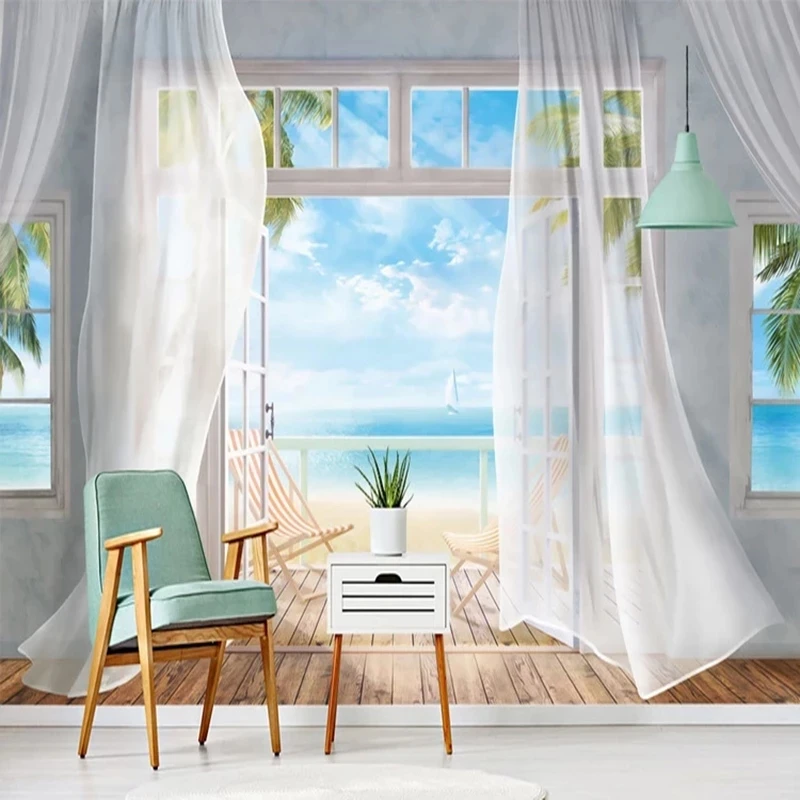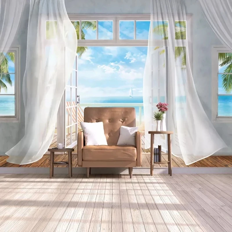 Самоклеящиеся 3D-обои на заказ, настенная роспись с изображением морского берега, балкона, гостиной, спальни, домашний декор, современная мода