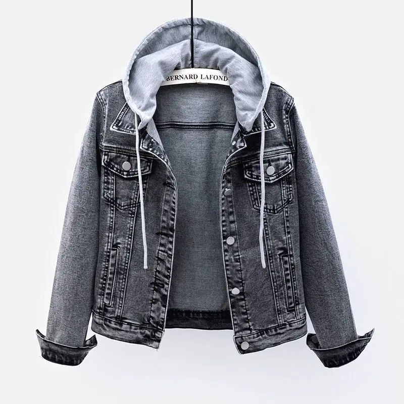 Джинсовая куртка женская короткая осень 2021 новый продукт съемная черная и серая куртка с капюшоном с длинным рукавом Универсальный Приталенный топ
