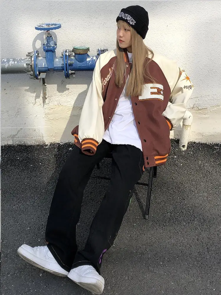 Спортивная куртка бейсбольная куртка-бомбер японская обувь на застежке-молнии, на шнуровке коричневая куртка для женщин с надписью Harajuku размера плюс уличная верхняя одежда в готическом стиле
