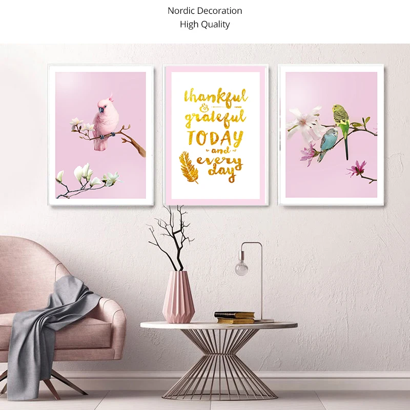 Американский стиль, розовый цветок, попугай, современные птицы, скандинавский плакат, Настенная картина, печать на холсте, картина для гостиной, домашний декор