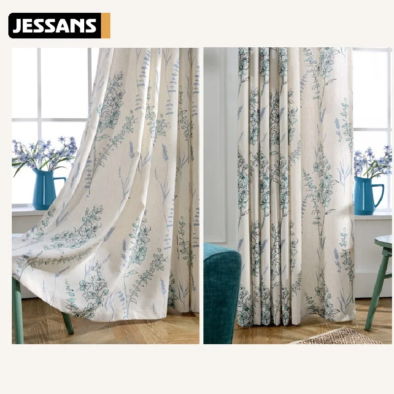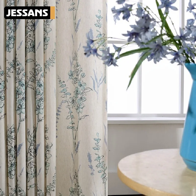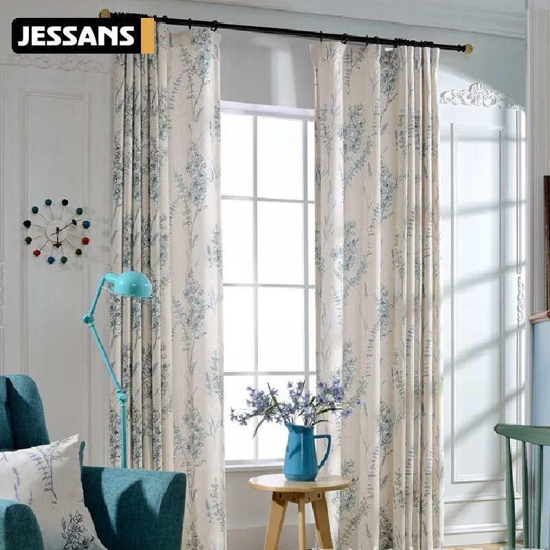 Шторы из хлопка и льна с принтом, занавески в американском пасторальном стиле для гостиной, спальни, защита окружающей среды, с синим принтом