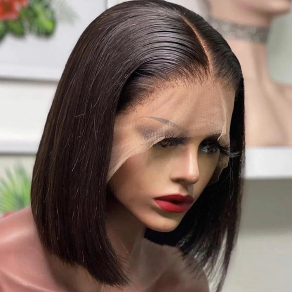 Короткие парики боб, прямые парики из человеческих волос на сетке для женщин, предварительно выпрямленные Детские волосы, 13x5x2 T часть, парик Боб, волосы без повреждений