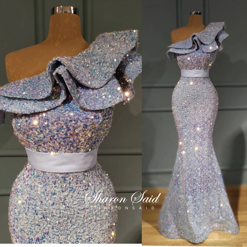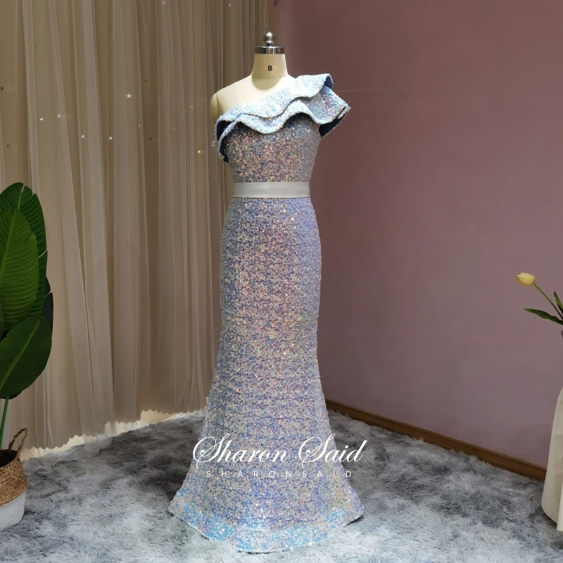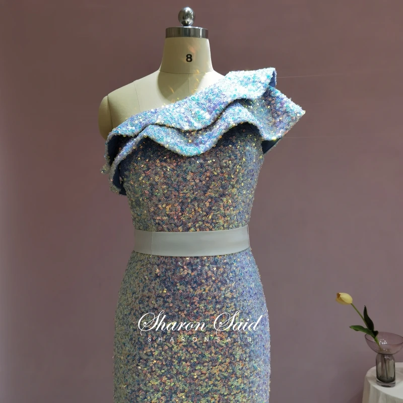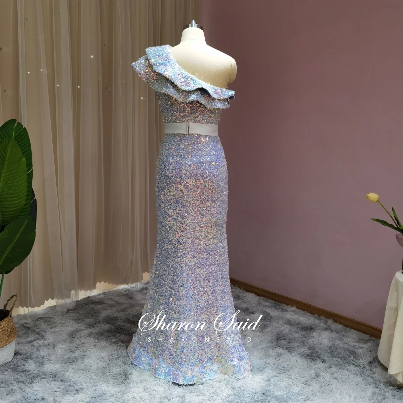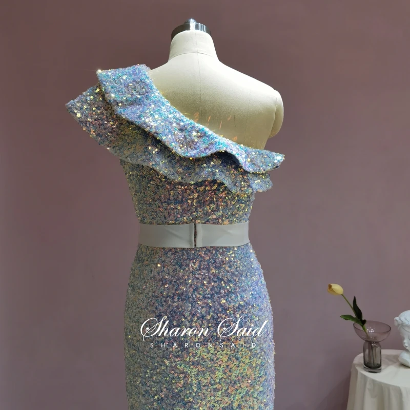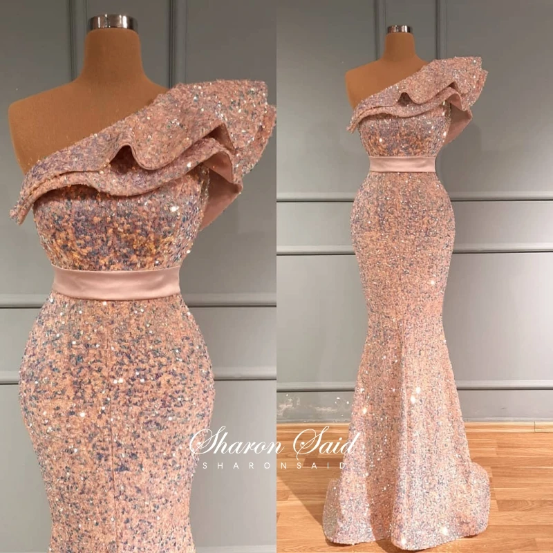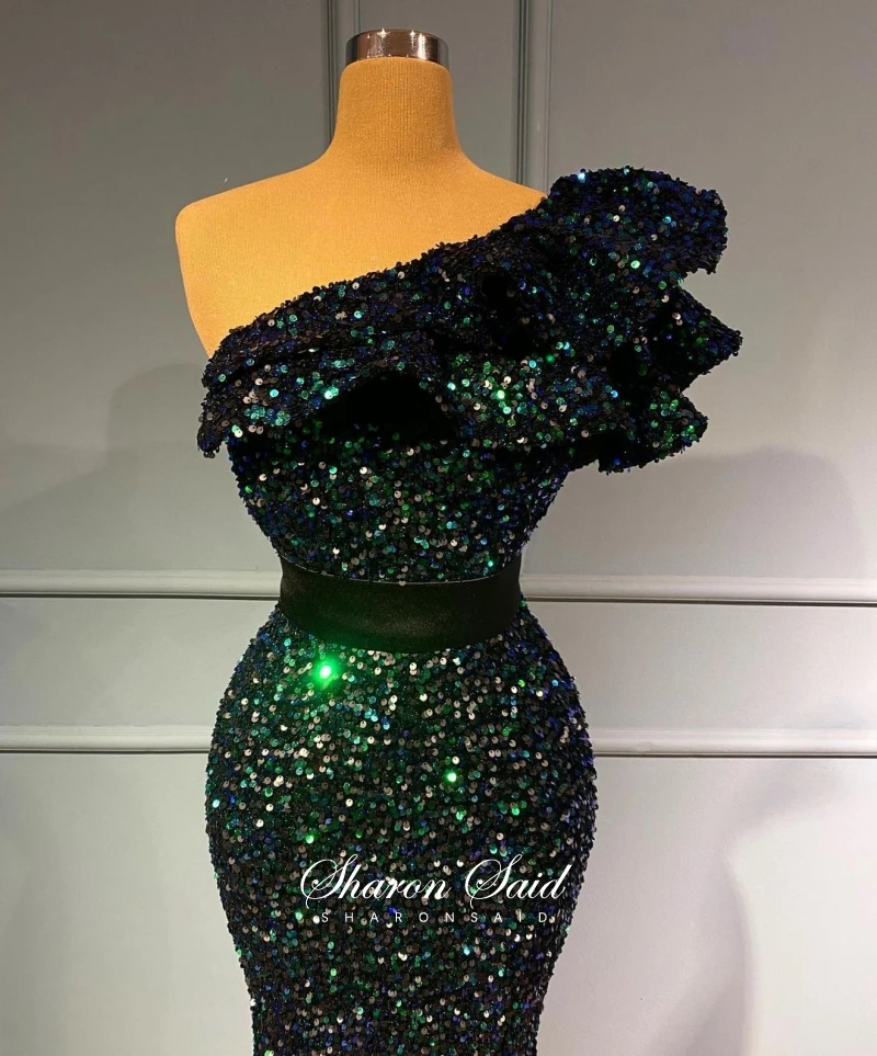 Женское вечернее платье с блестками, розовое, изумрудно-зеленое платье с одним открытым плечом и юбкой годе для гостей свадьбы
