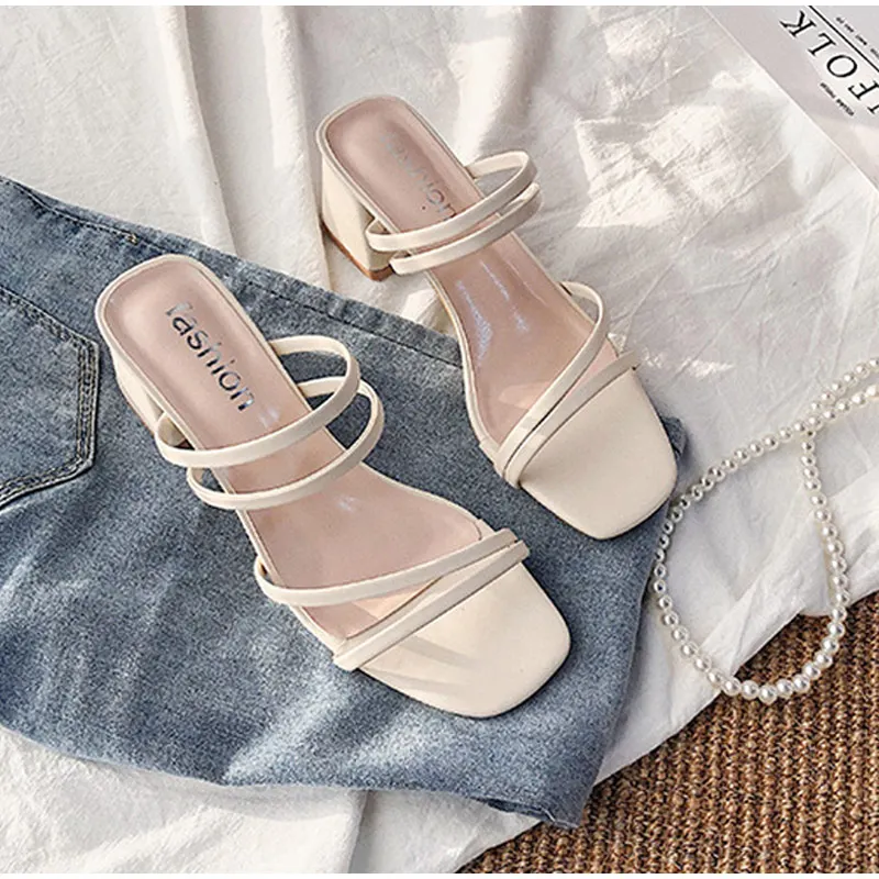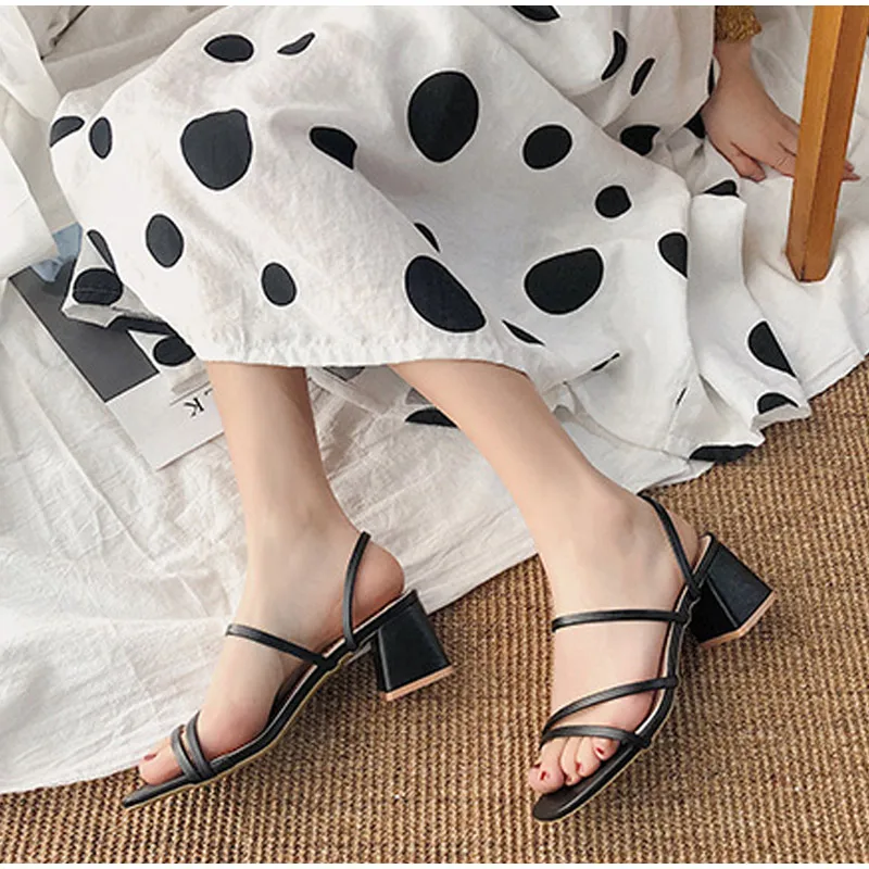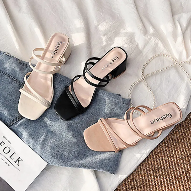 Сандалии женские на квадратном каблуке, элегантные кожаные шлепанцы, перекрестная шнуровка, сланцы, летняя модель, 2021