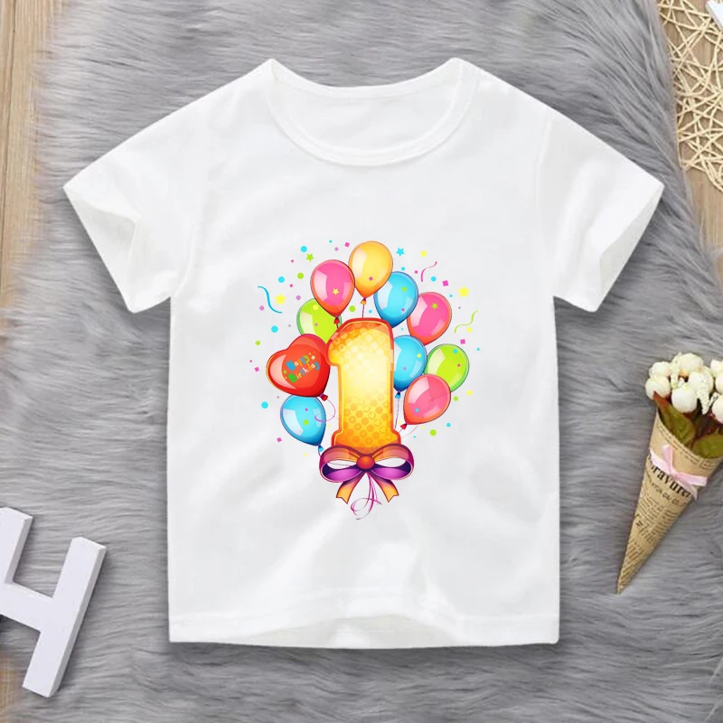 Футболка детская с круглым вырезом, смешная рубашка с мультяшным принтом и цифрами, одежда для маленьких мальчиков и девочек, подарок на день рождения, белый цвет, на лето