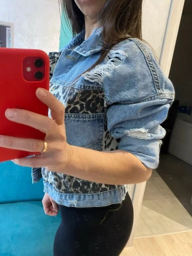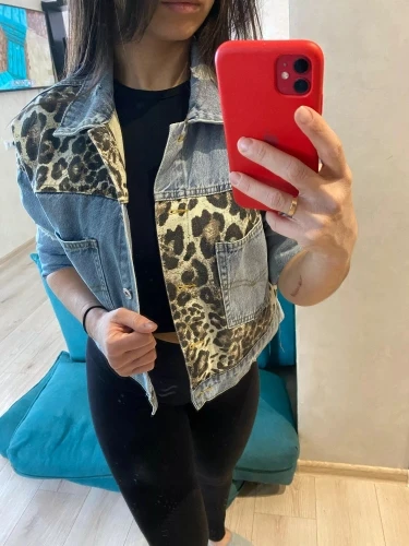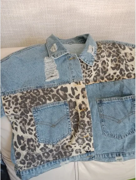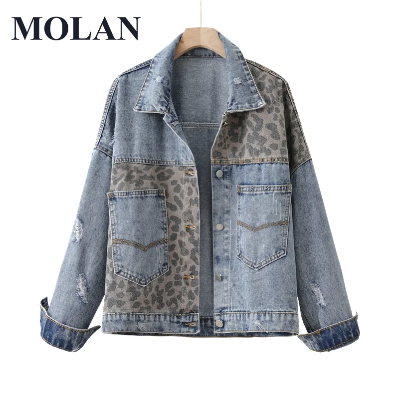 Куртка MOLAN женская джинсовая с леопардовым принтом, модная повседневная винтажная верхняя одежда из денима с длинным рукавом, шикарный топ на весну-осень