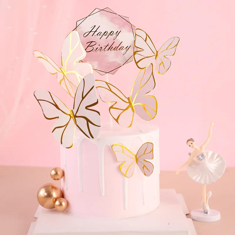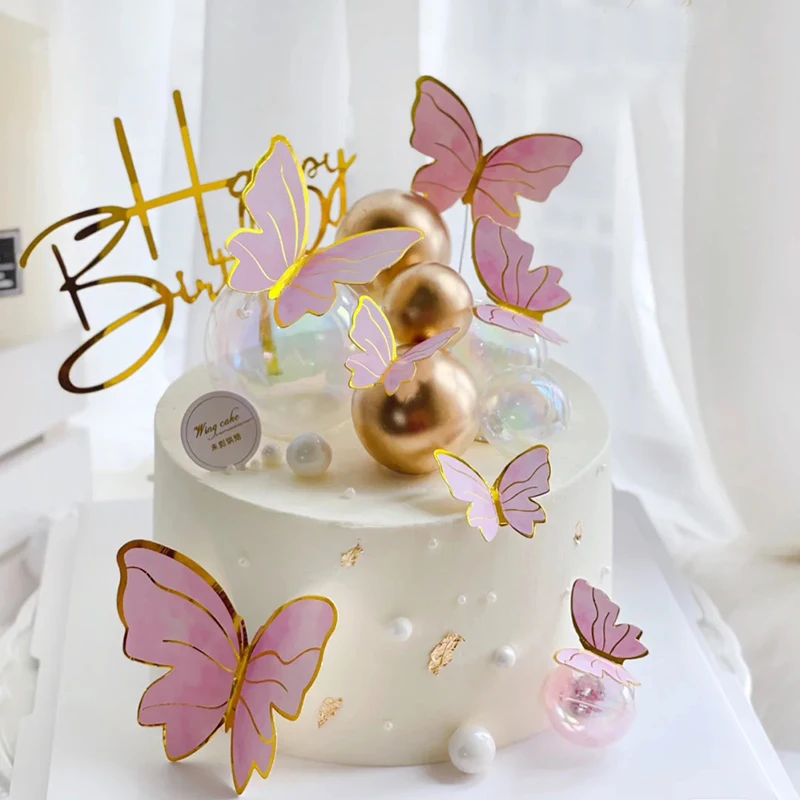 1 комплект креативная розовая тема бабочки, топпер для торта С Днем...