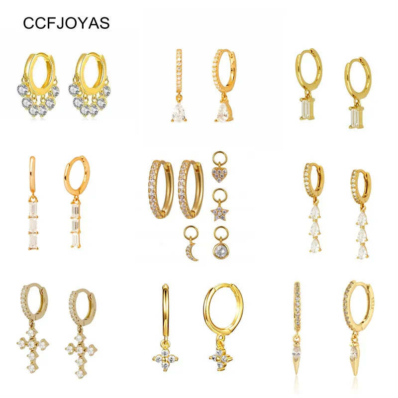 CCFJOYAS белого цвета цирконием, серьги в виде колец, 925 серебряный крестплощадьв форме шаракапли воды серьги в форме фигурного кольца ювелирные изделия