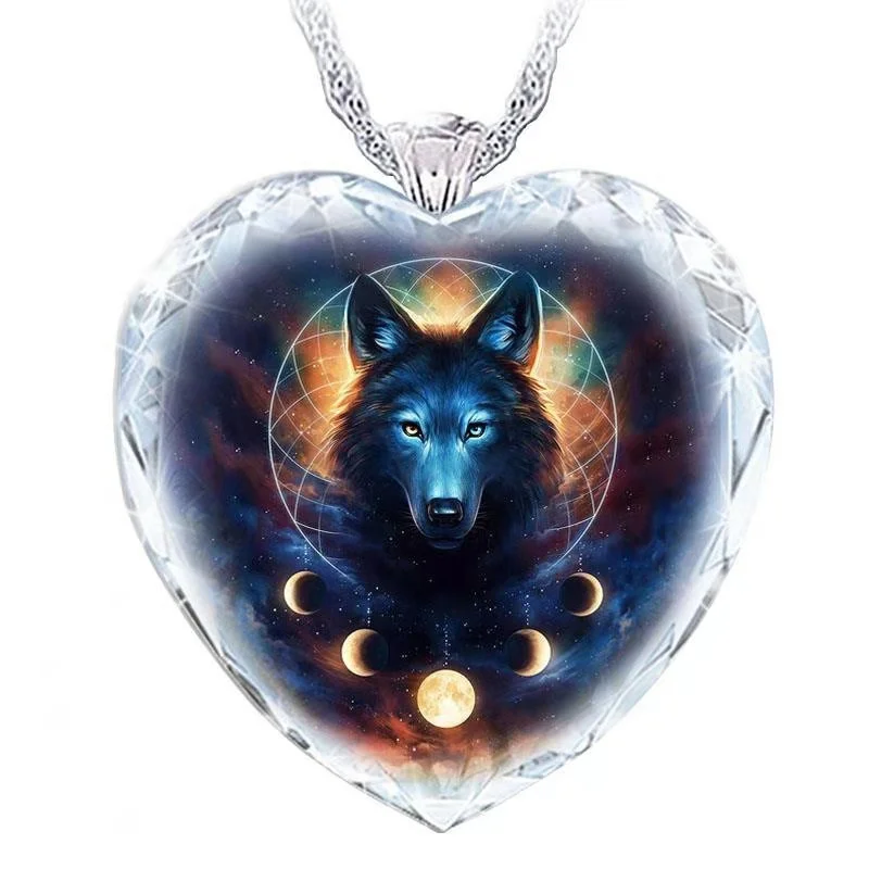 Ожерелье женское, с кулоном в форме сердца, серого волка, с кристал...