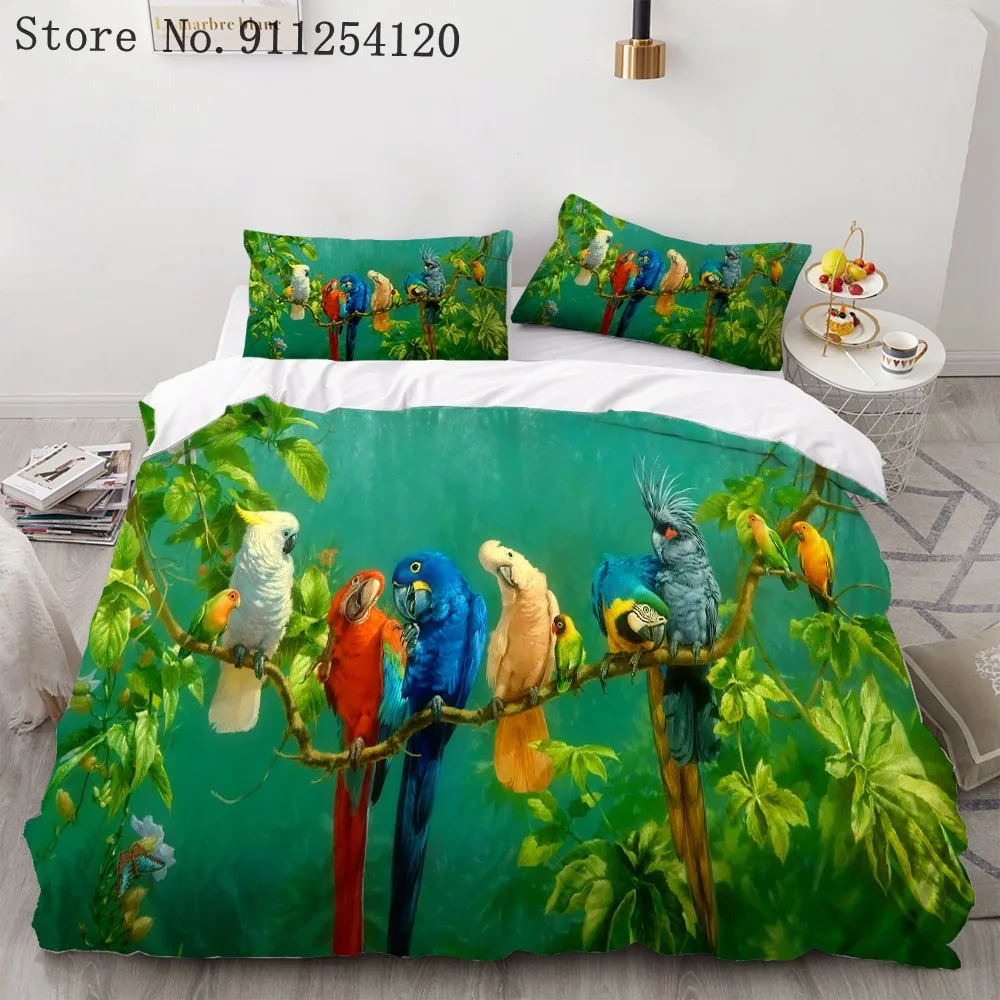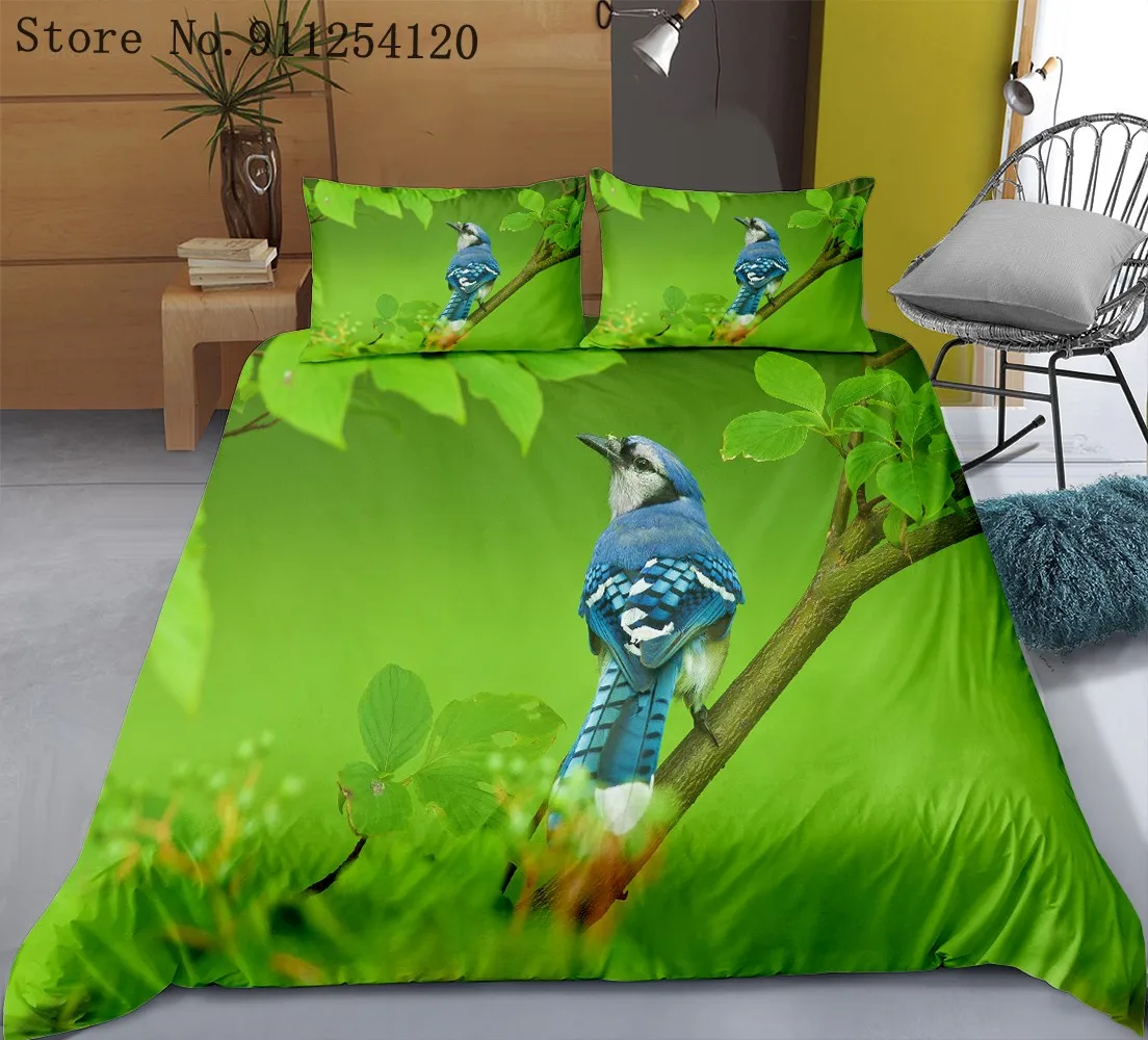 Набор пододеяльников с птицами, 2/3 шт, двуспальные комплекты постельного белья королевского размера, постельное одеяло с изображением животных и леса, домашние постельные принадлежности