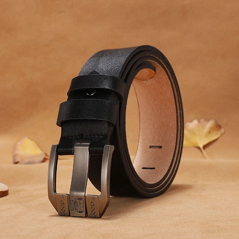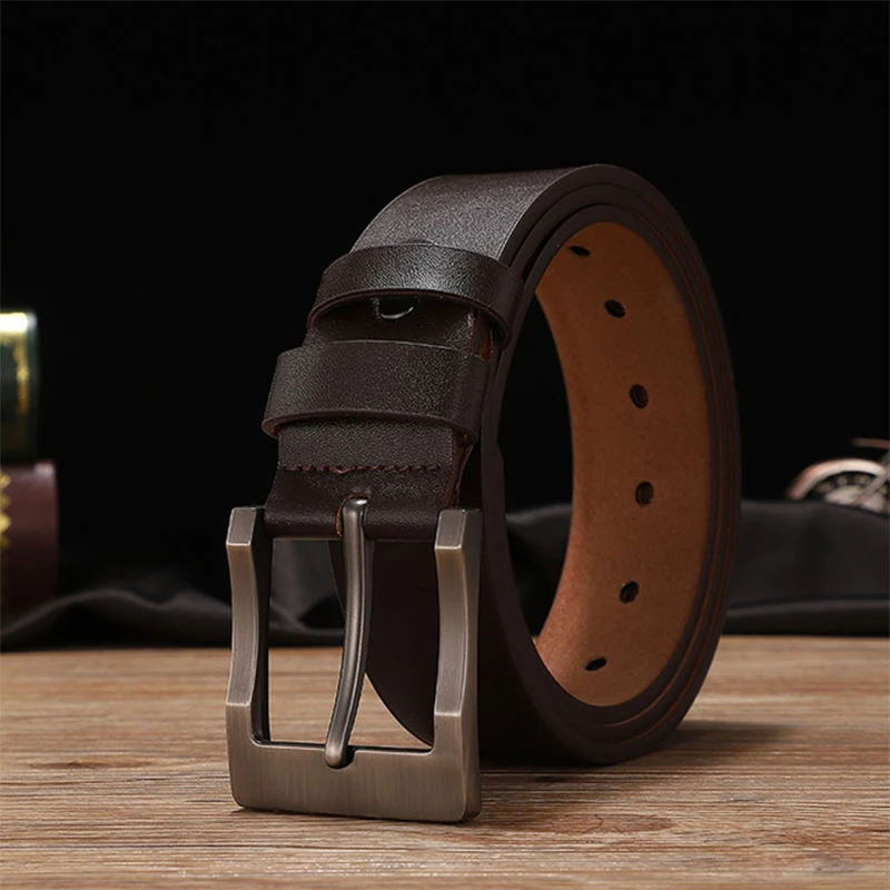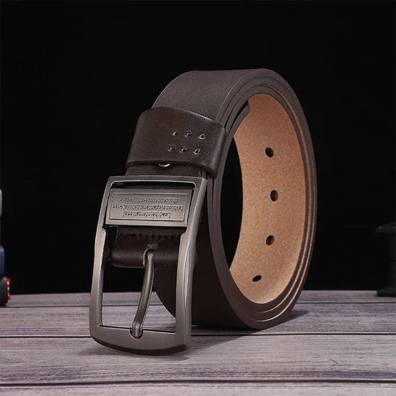 Мужской ремень из натуральной кожи с металлическим сплавом и шпилькой