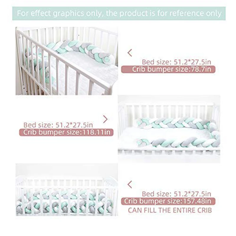 ♥【Материал 】-наполнен нашим сверхтонким PP хлопковым наполнением + подкладка для этого супер мягкого прикосновения.♥【Безопасный и защищенный 】-эти бамперные прокладки для кроватки могут избежать попадания головы, ног или рук в детскую кроватку, И он сохранит ваших маленьких в безопасности и позволит вам немного поспать ночью, не беспокоясь.♥【Подходит для всех детских кроваток или коляска для малыша-благодаря умному дизайну без галстуков, бампер для детской кроватки включает все кроватки, люльки и кроватки для малышей.♥【Многоцелевой дизайн-это не только бампер для кроватки или колыбели, но также может использоваться в качестве задней подушки, спальной подушки, украшения постельных принадлежностей. Отличный подарок для вашего ребенка!♥【SIZE CHOOSING】-Есть 5 размеров на выбор, 39,3 дюйма, 59 дюймов, 78,7 дюйма, 118,11 дюйма, 157,48 дюйма. Ширина 5,7 дюйм (ов), высота 1,97 дюймов. Пожалуйста, измерьте требуемую длину перед покупкой. Если вы хотите покрыть обычную кроватку (27x52 '), вы должны купить 157,48 дюйма.