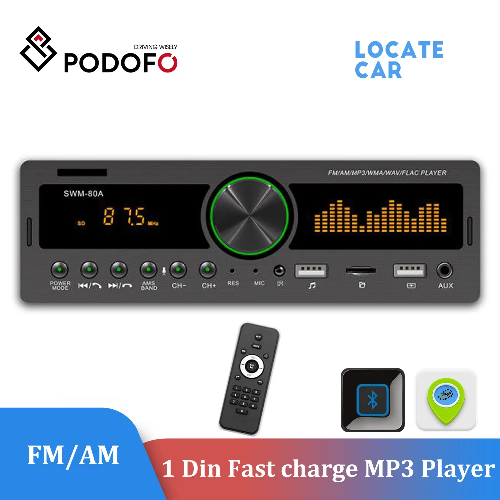 Podofo 1Din автомобильный Радио Стерео голосовой помощник цифровой Bluetooth аудио Музыка USBSDAUX-INAMFM MP3 плеер Быстрая зарядка